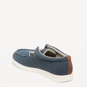 Slip-On Knit Deck Shoes for Boys: elastic lace-up front, faux-leather piece at tongue, cushioned foot bed, textured synthetic outsole, #694350