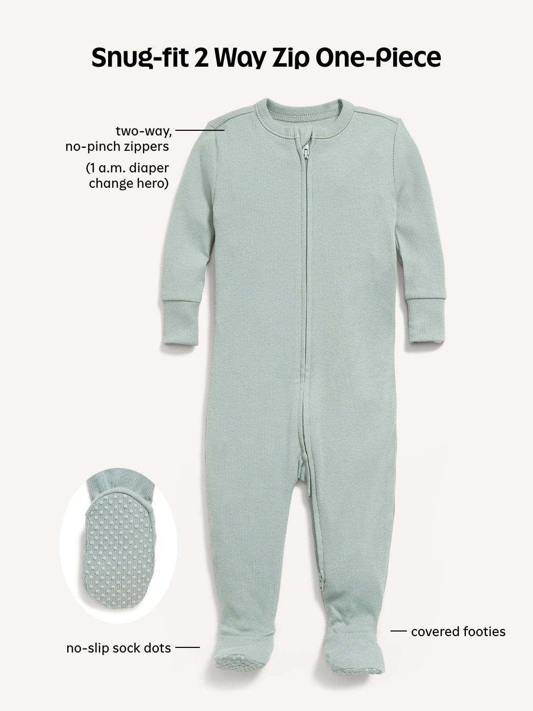 Snug-Fit 2 Way Zip Footed One-Piece for Baby