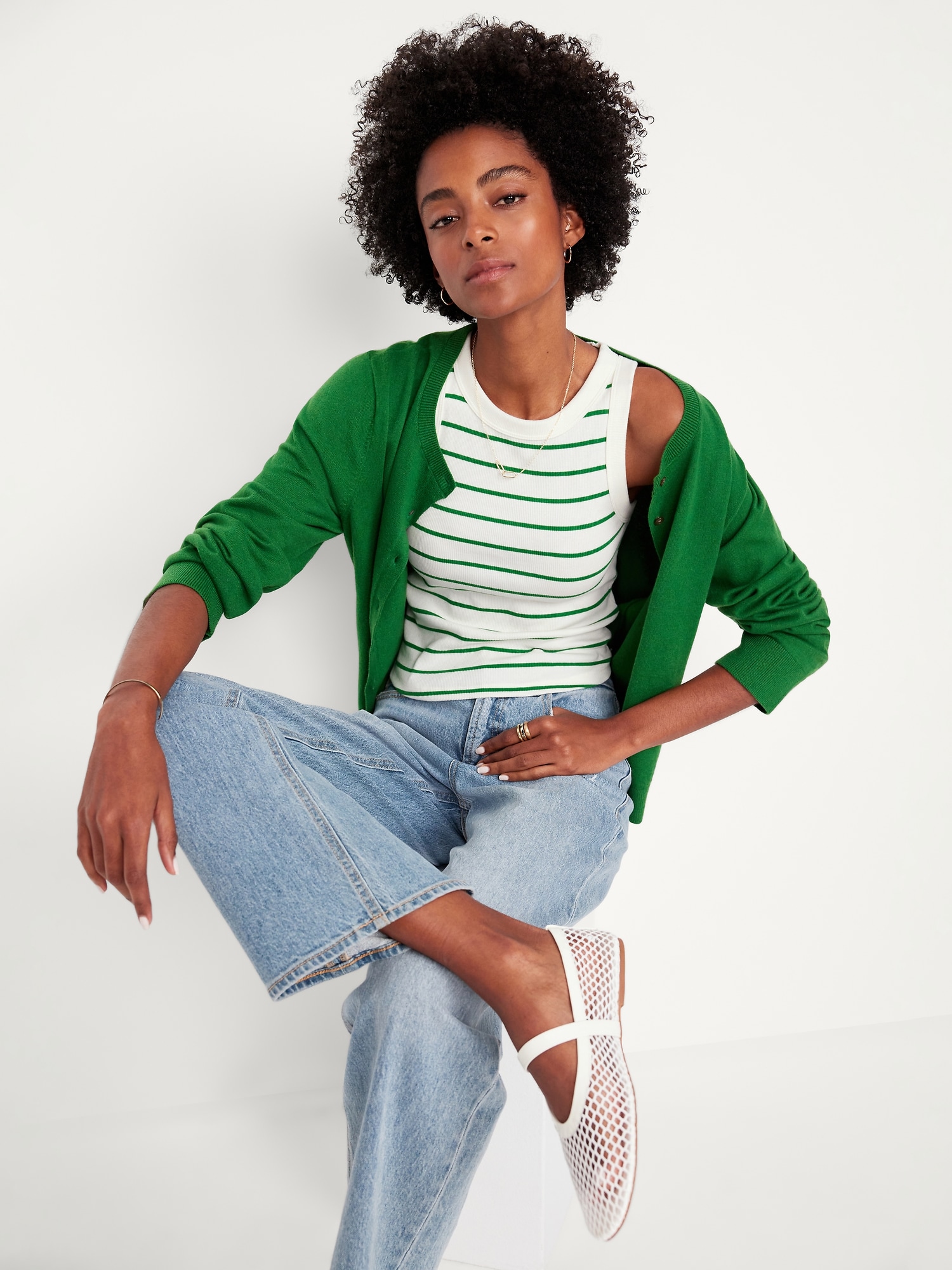 Snug Striped Tank Top: A skimming fit that hugs your bod just right.high crew neck, sleeveless, #889951