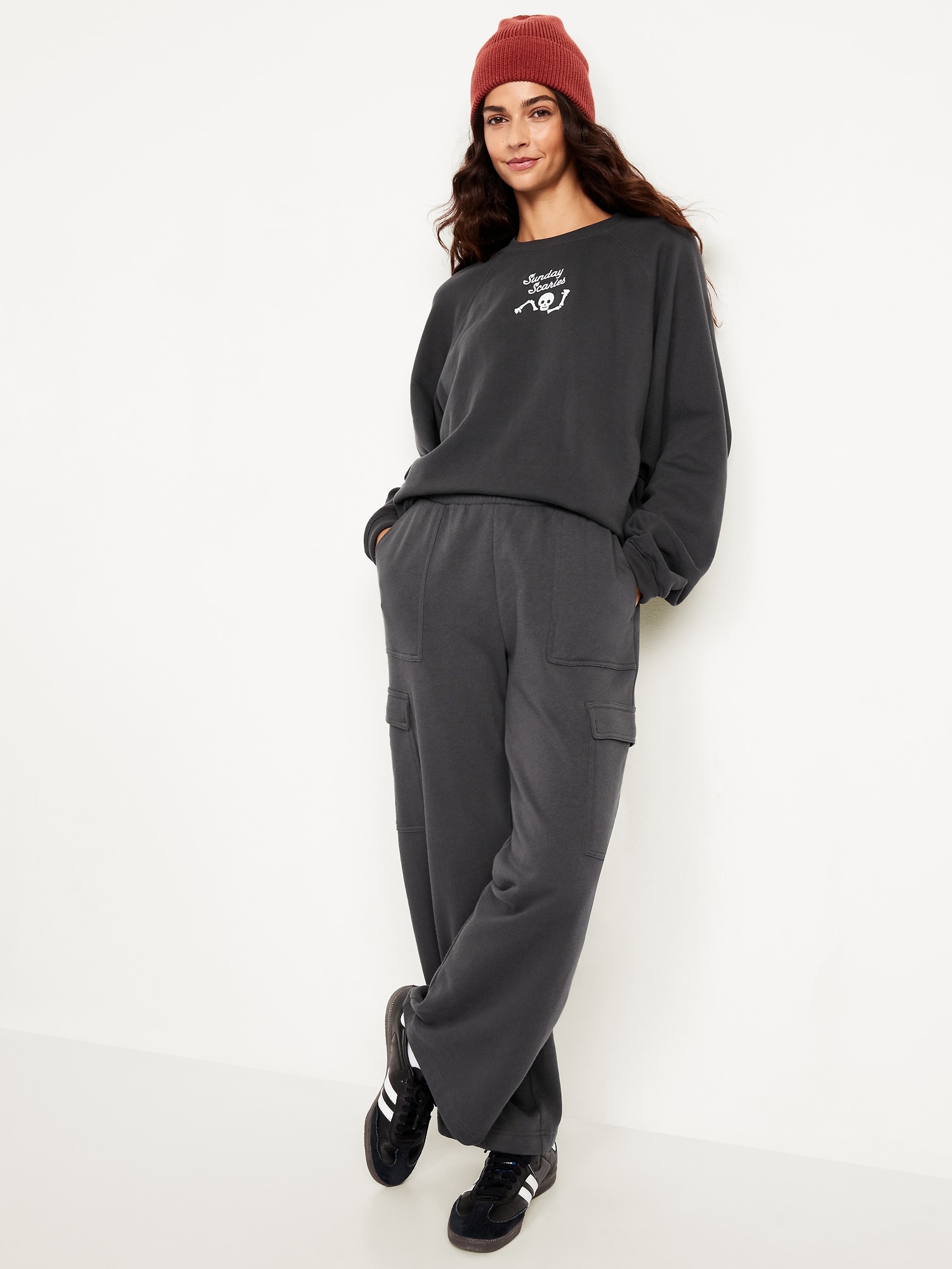 SoComfy Oversized Graphic Raglan Sweatshirt: The perfect-weight, never-taking-this-off fleece.embroidered floral accent, crew neck, long raglan sleeves, rib-knit trim, pullover style, #824100