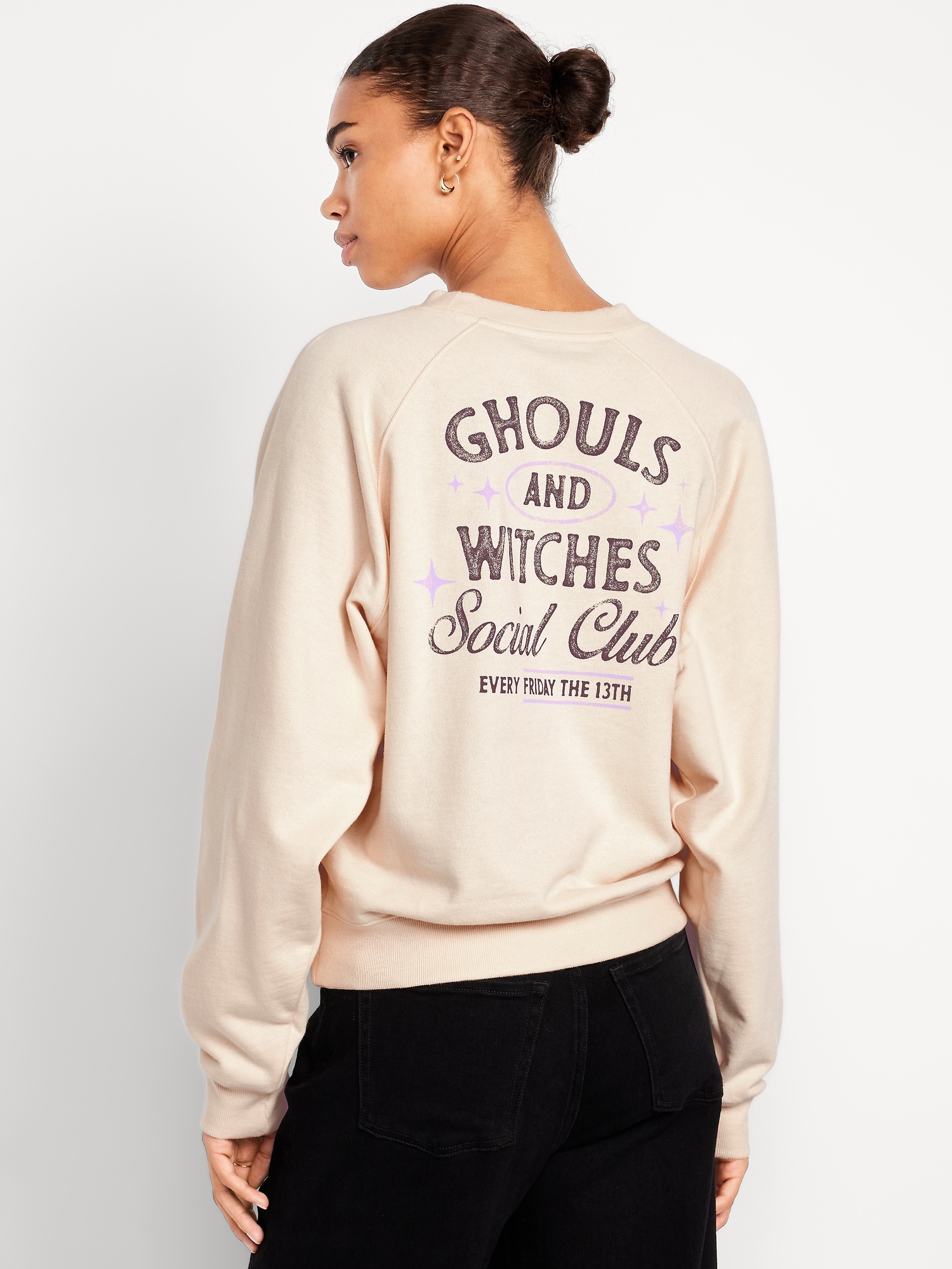 SoComfy Oversized Graphic Raglan Sweatshirt: The perfect-weight, never-taking-this-off fleece.graphic varies by color, crew neck, long raglan sleeves, rib-knit trim, pullover style, #824098