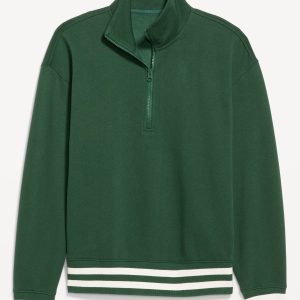 SoComfy Oversized Half-Zip Sweatshirt: The perfect-weight, never-taking-this-off fleece.mock neck, drop-shoulder sleeves, half-zip front, contrasting tipped trim, pullover style, #801579