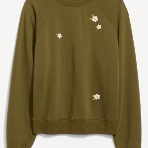 SoComfy Oversized Raglan Sweatshirt: The perfect-weight, never-taking-this-off fleece.embroidered floral accent, crew neck, long raglan sleeves, rib-knit trim, pullover style, #824100