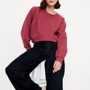 SoComfy Oversized Raglan Sweatshirt: The perfect-weight, never-taking-this-off fleece.embroidered floral accent, crew neck, long raglan sleeves, rib-knit trim, pullover style, #824100