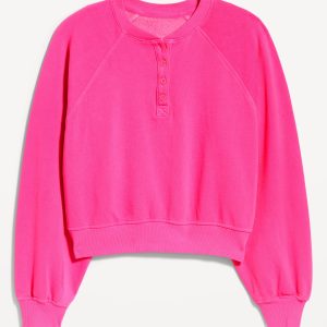 SoComfy Oversized Sweatshirt: The perfect-weight, never-taking-this-off fleece.button-front crew neck, long blouson sleeves, rib-knit trim, pullover style, #764233