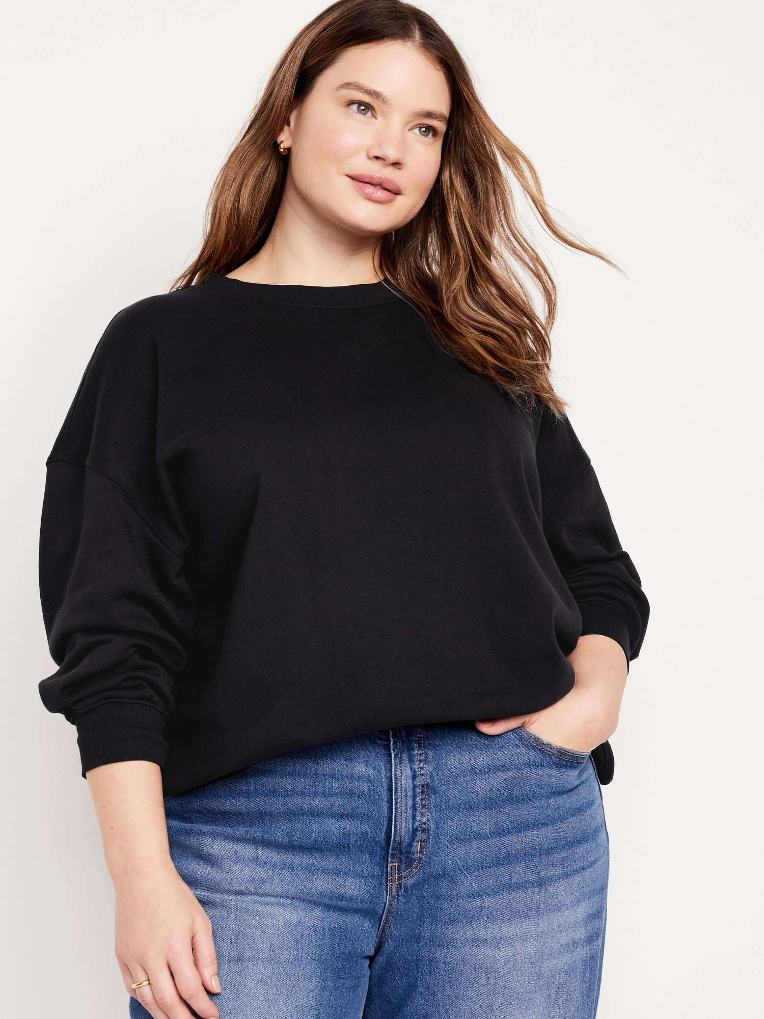 SoComfy Oversized Tunic Sweatshirt: The perfect-weight, never-taking-this-off fleece.crew neck, drop-shoulder sleeves, rib-knit trim, graphics vary, #865011