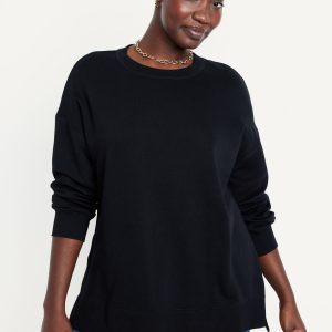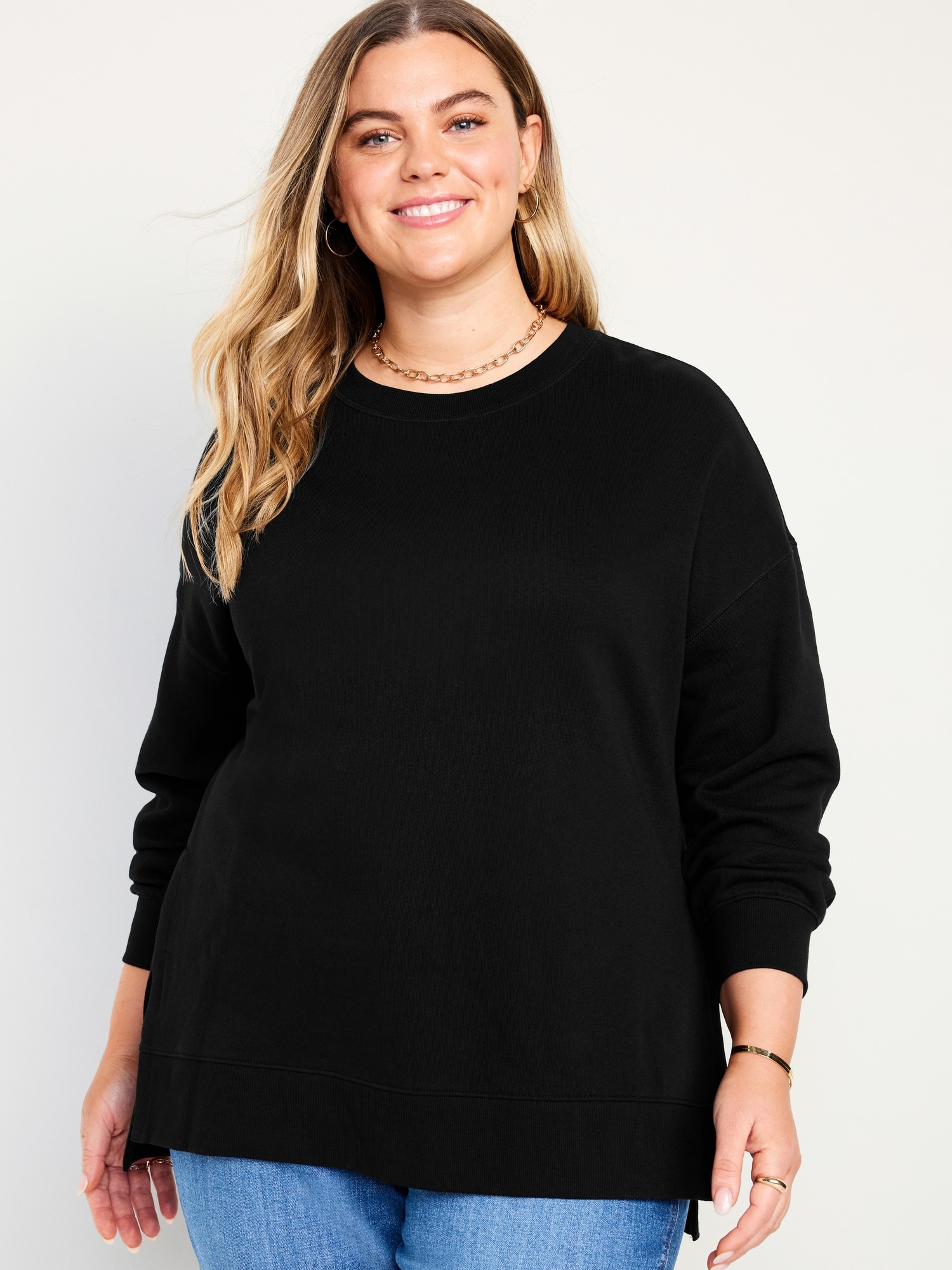 SoComfy Relaxed Tunic Sweatshirt: The perfect-weight, never-taking-this-off fleece.crew neck, drop-shoulder sleeves, vented sides, stepped hem, rib-knit trim, pullover style, #890649