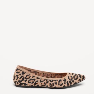 Soft-Knit Pointed-Toe Ballet Flats: soft-knit upper, pointed toe, quilted faux-suede foot bed, textured thermoplastic rubber outsole, 1/4″ heel, #795204