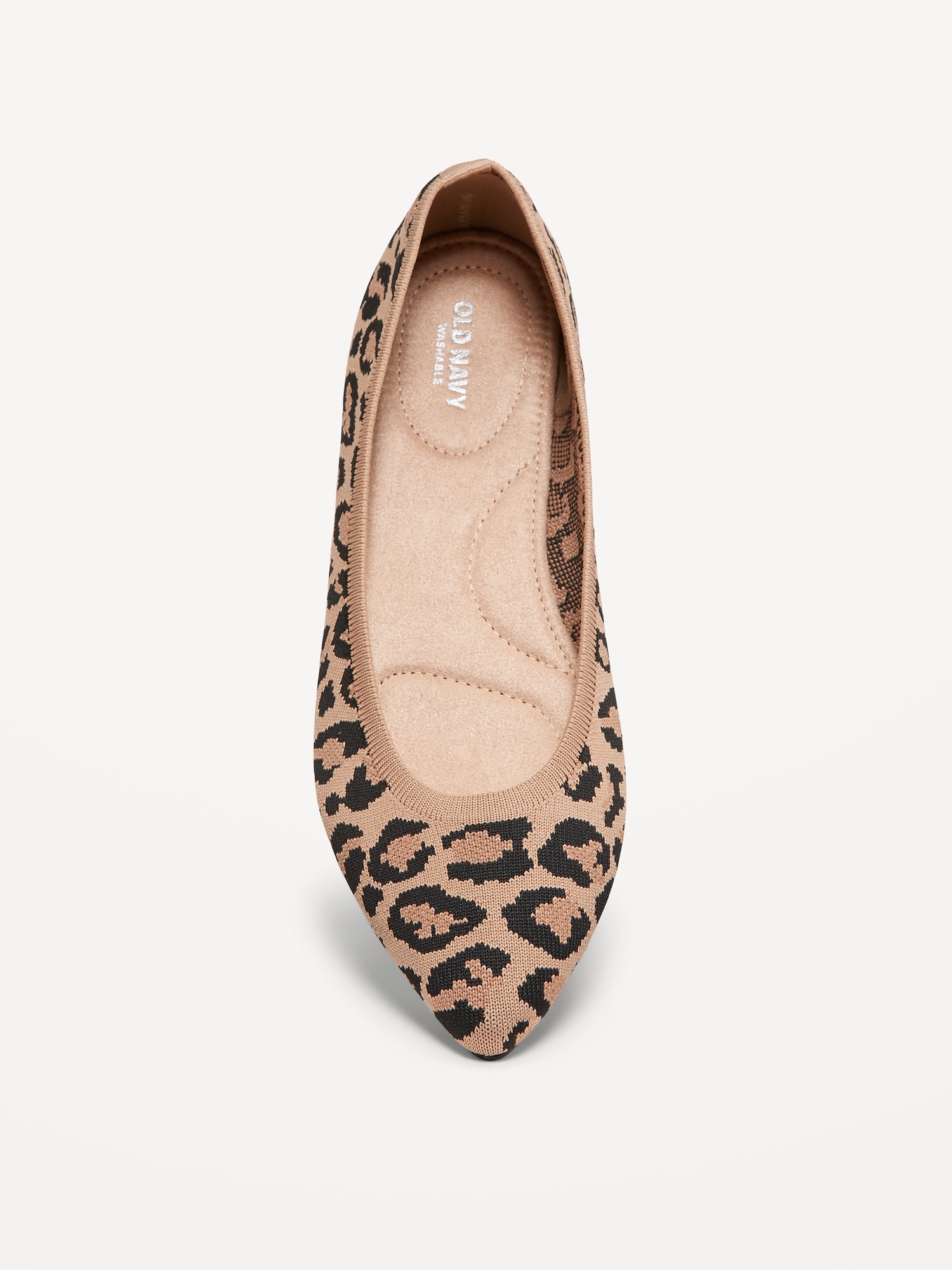 Soft-Knit Pointed-Toe Ballet Flats: soft-knit upper, pointed toe, quilted faux-suede foot bed, textured thermoplastic rubber outsole, 1/4″ heel, #795204