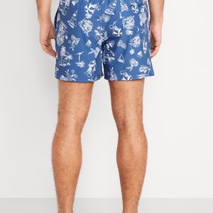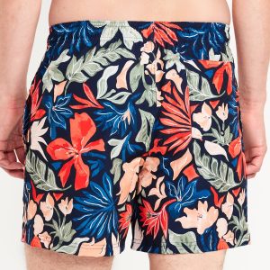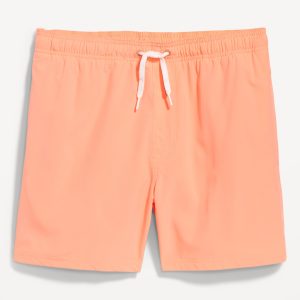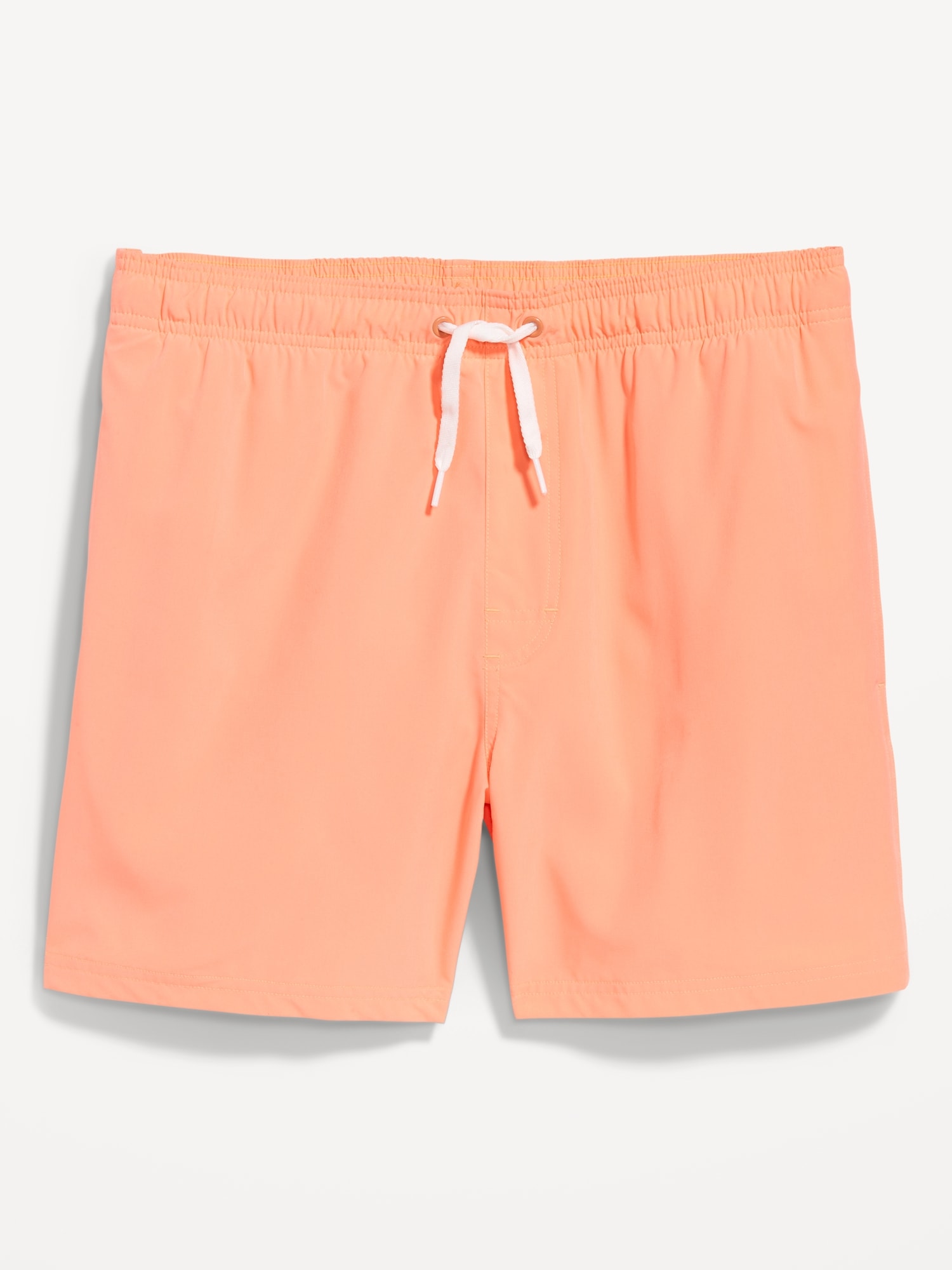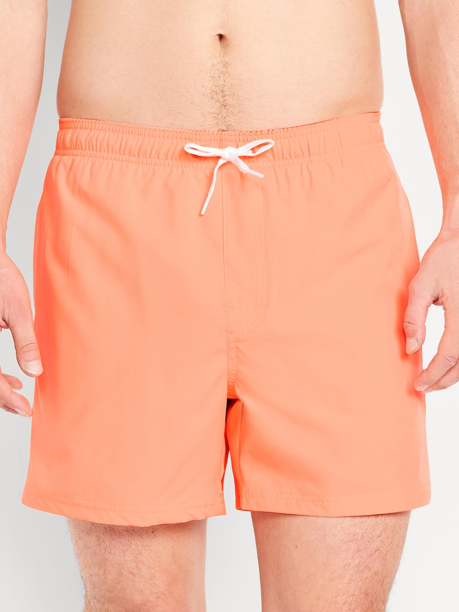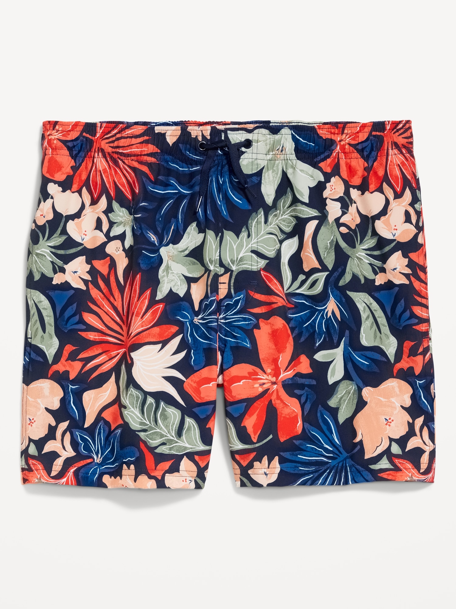 Solid Swim Trunks — 5-inch inseam: elastic-drawstring waistband, on-seam pockets, back pocket with grommet drain, built-in mesh briefs, pull-on style, all-over cocktail print, #766289