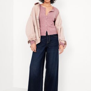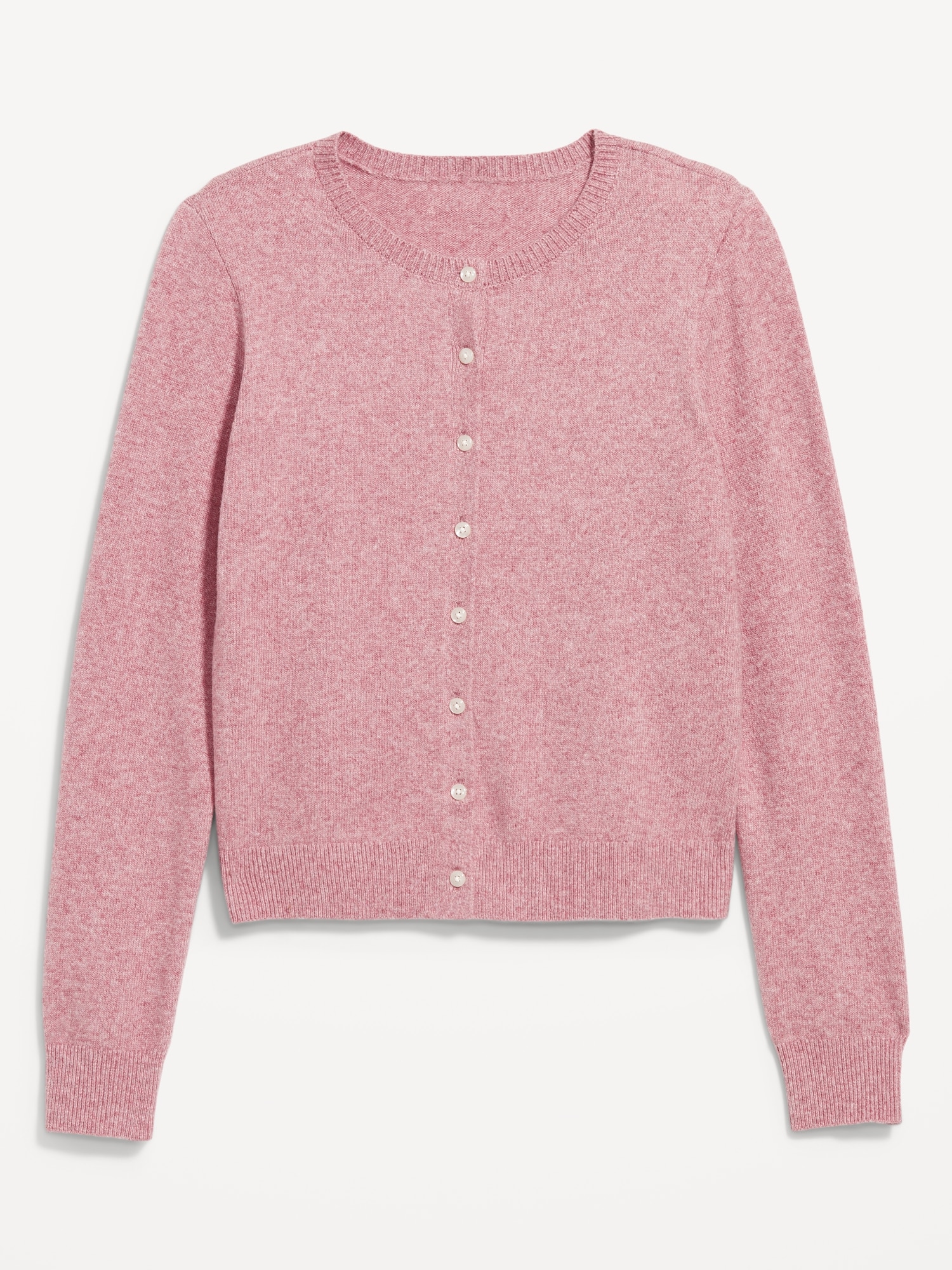 SoSoft Cropped Cardigan Sweater: Featuring SoSoft. Literally “so soft” it’s got cashmere jealous.crew neck, long sleeves, full-button front, #785112