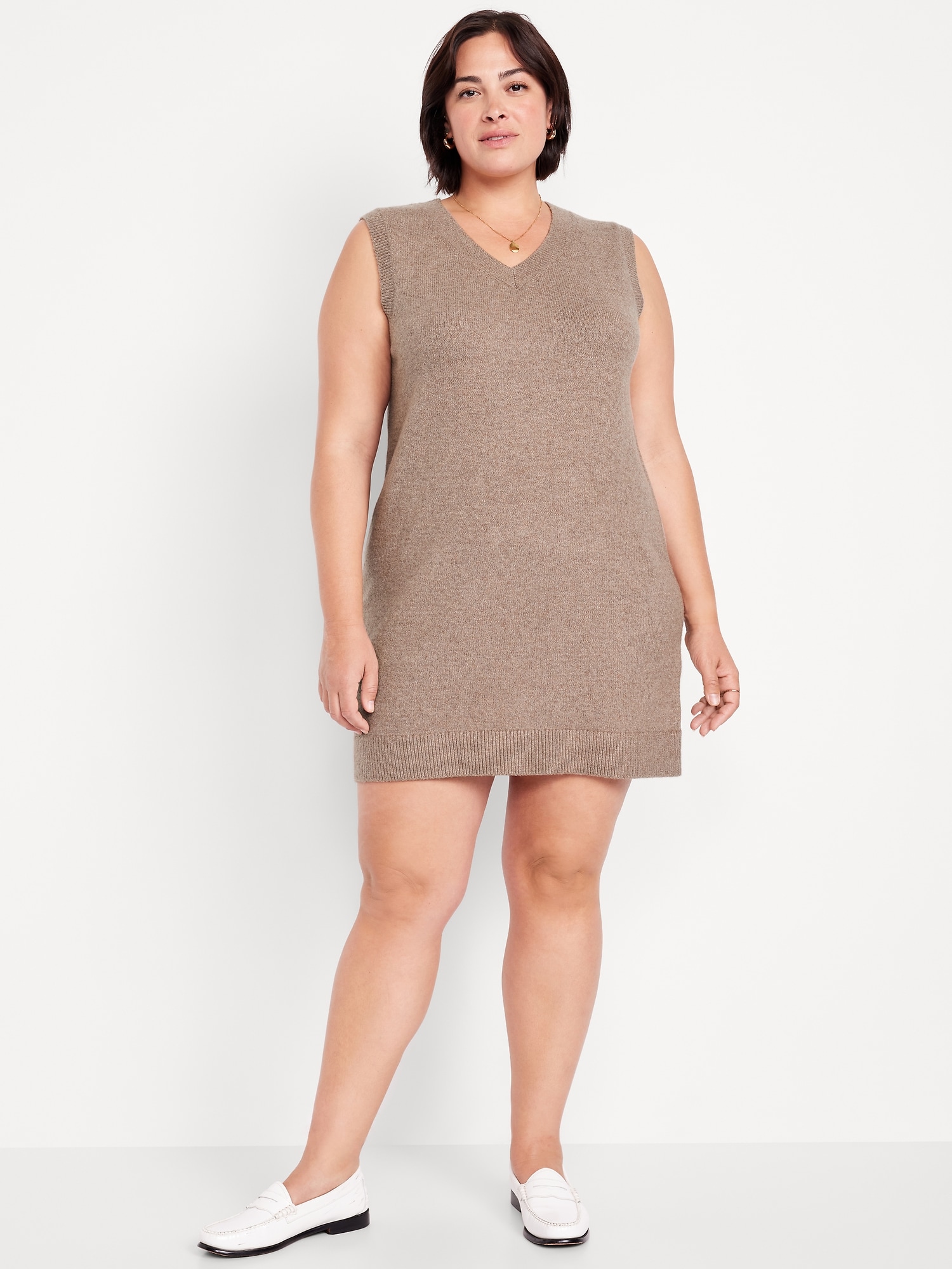 SoSoft Sleeveless Mini Sweater Dress: Featuring SoSoft. Literally “so soft” it’s got cashmere jealous.v-neck, sleeveless, rib-knit trim, #787473