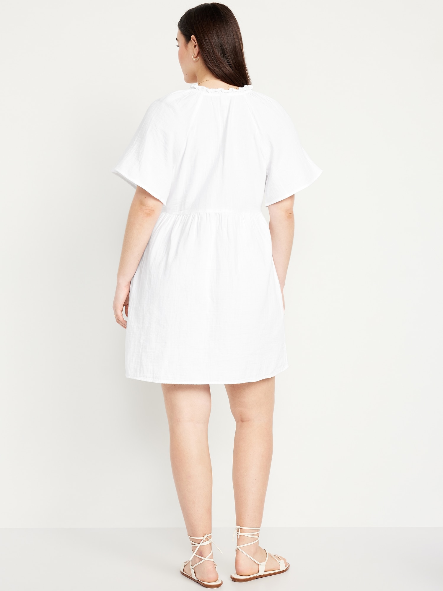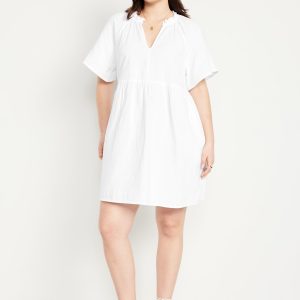 Split-Neck Crinkle Gauze Mini Swing Dress