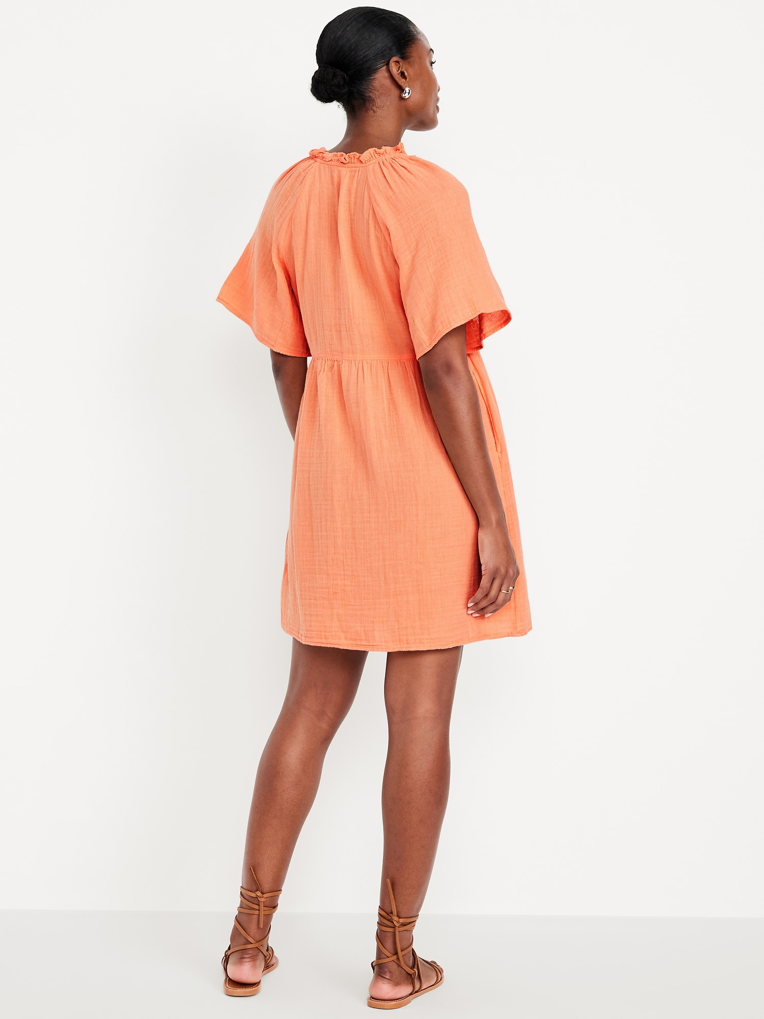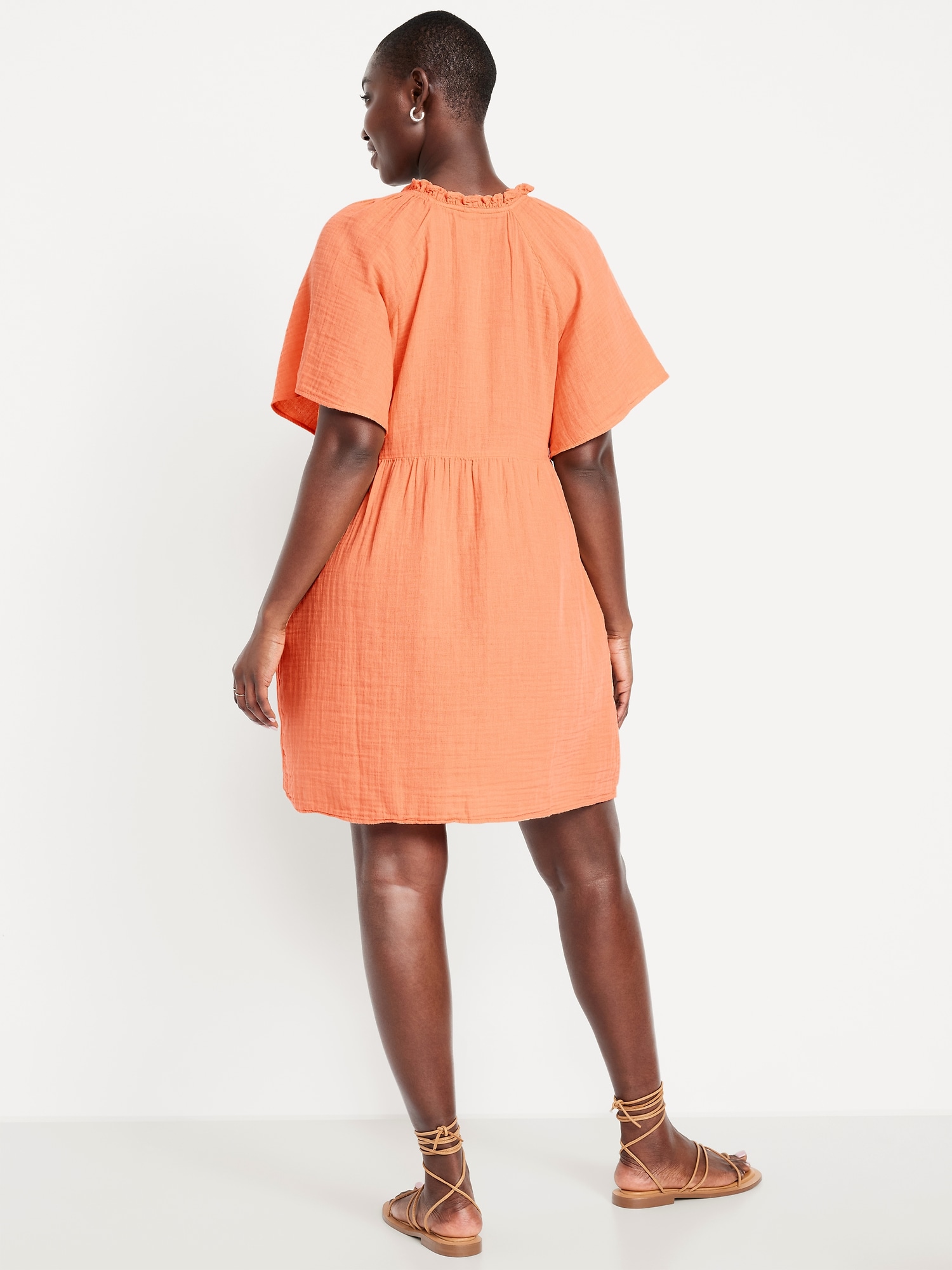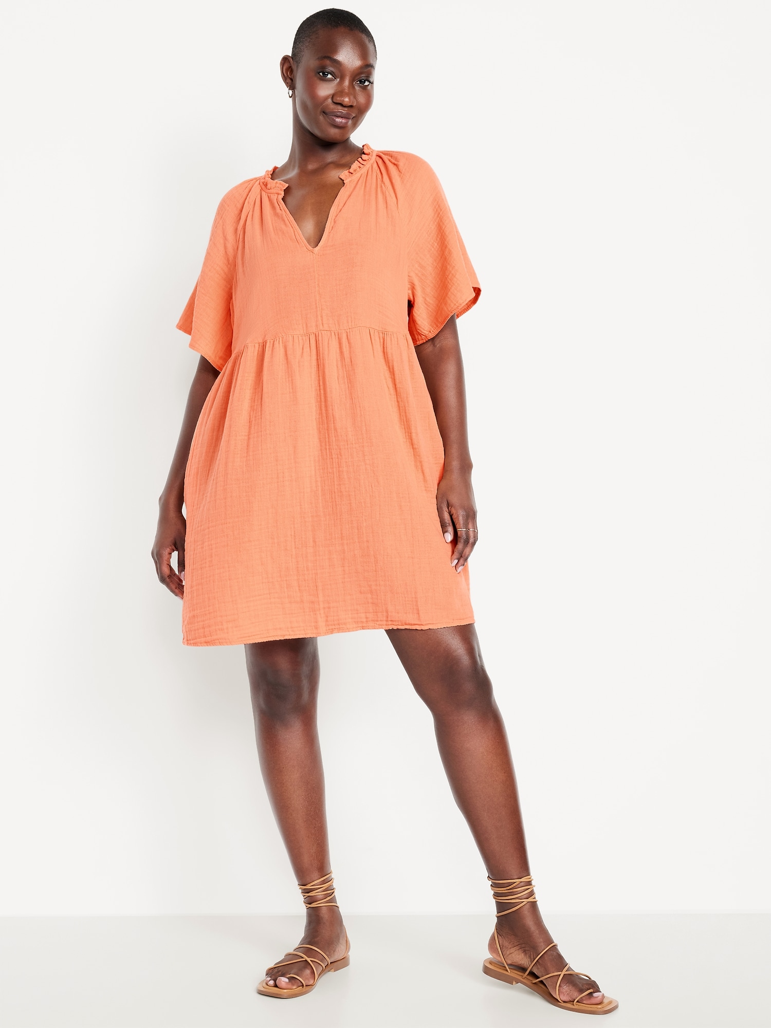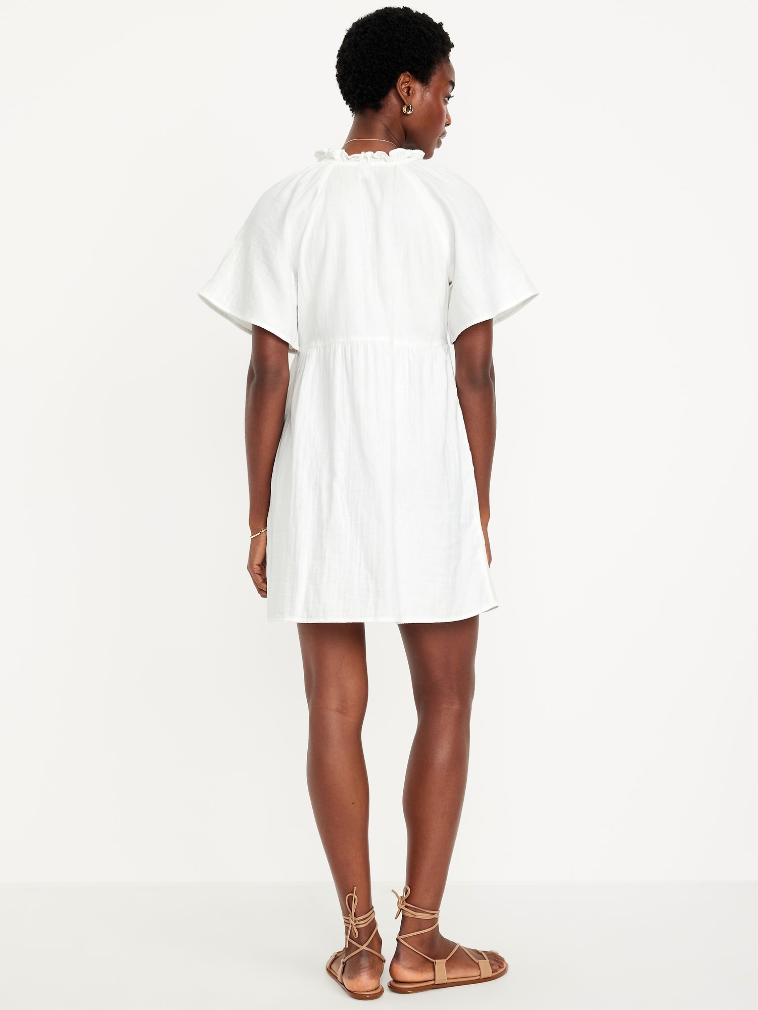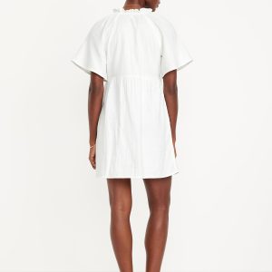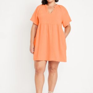 Split-Neck Crinkle Gauze Mini Swing Dress