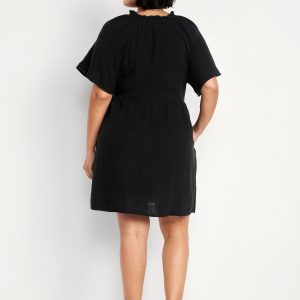 Split-Neck Crinkle Gauze Mini Swing Dress