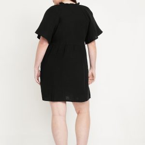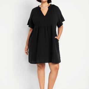 Split-Neck Crinkle Gauze Mini Swing Dress: A light, rippled fabric that’s begging to be beachside.ruffled split v-neck, short flutter sleeves, hip pockets, shirred detail, mini length, #705169