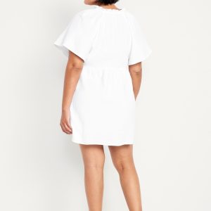 Split-Neck Crinkle Gauze Mini Swing Dress: A light, rippled fabric that’s begging to be beachside.ruffled split v-neck, short flutter sleeves, hip pockets, shirred detail, mini length, #705169