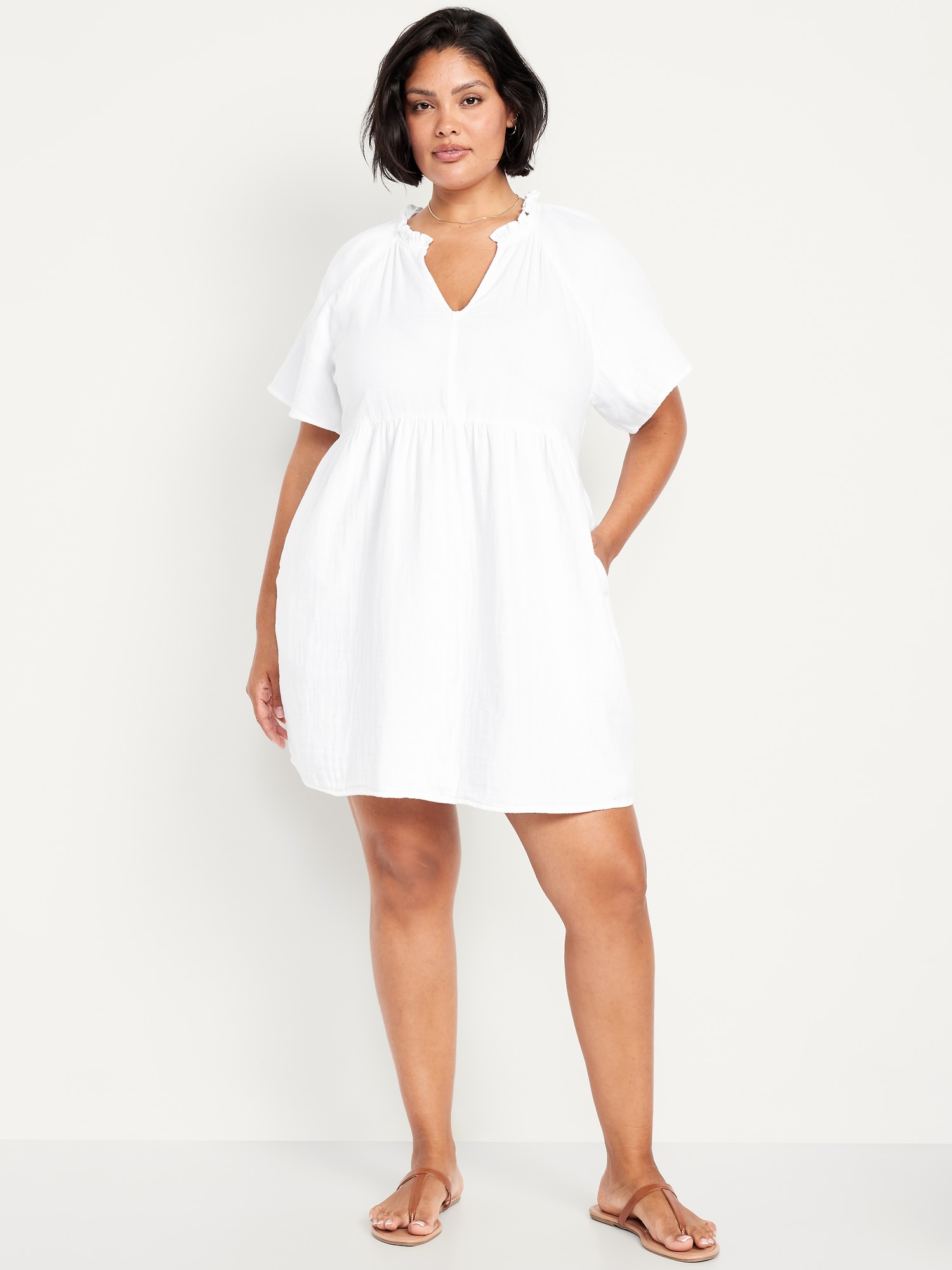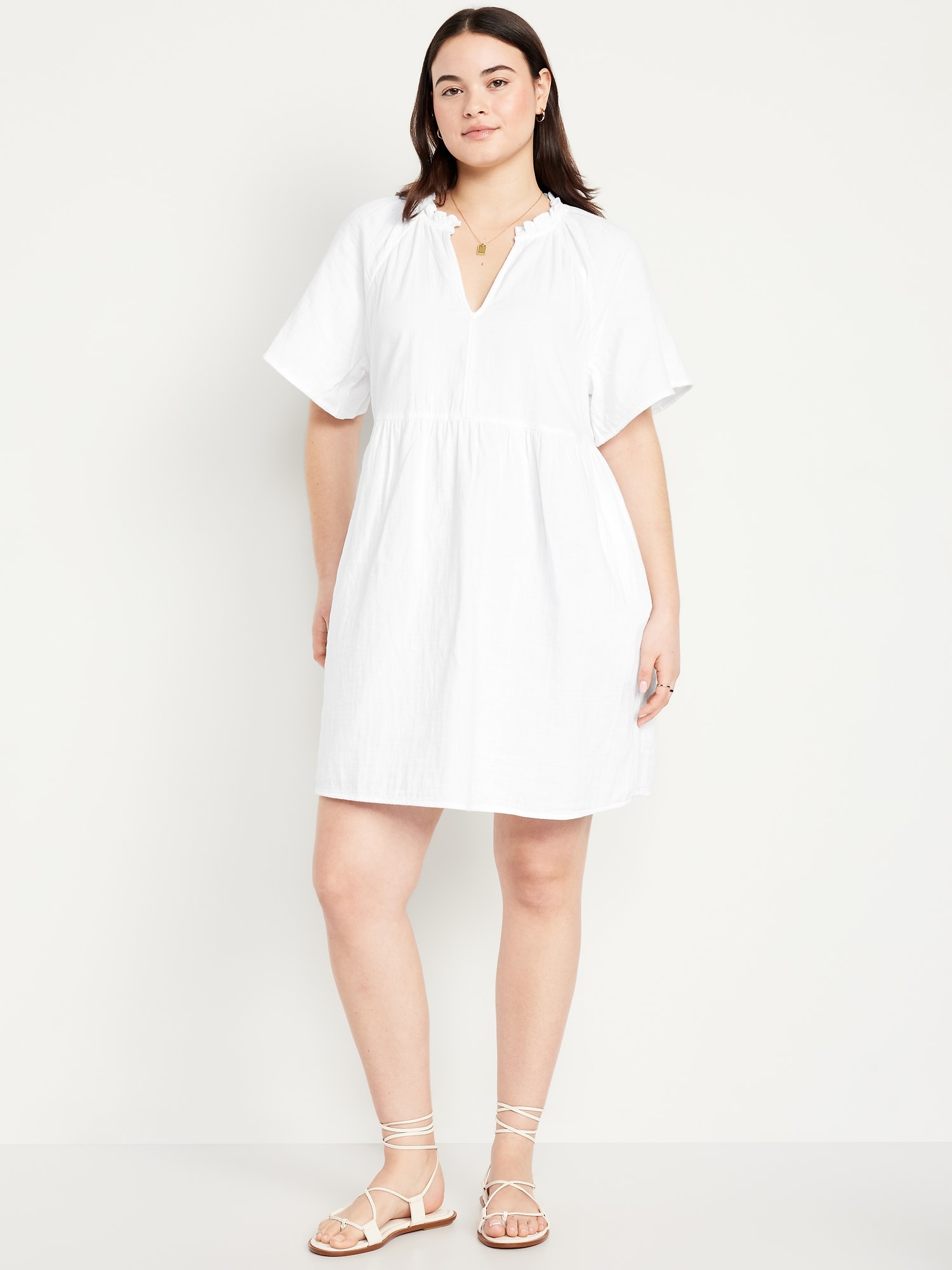 Split-Neck Crinkle Gauze Mini Swing Dress