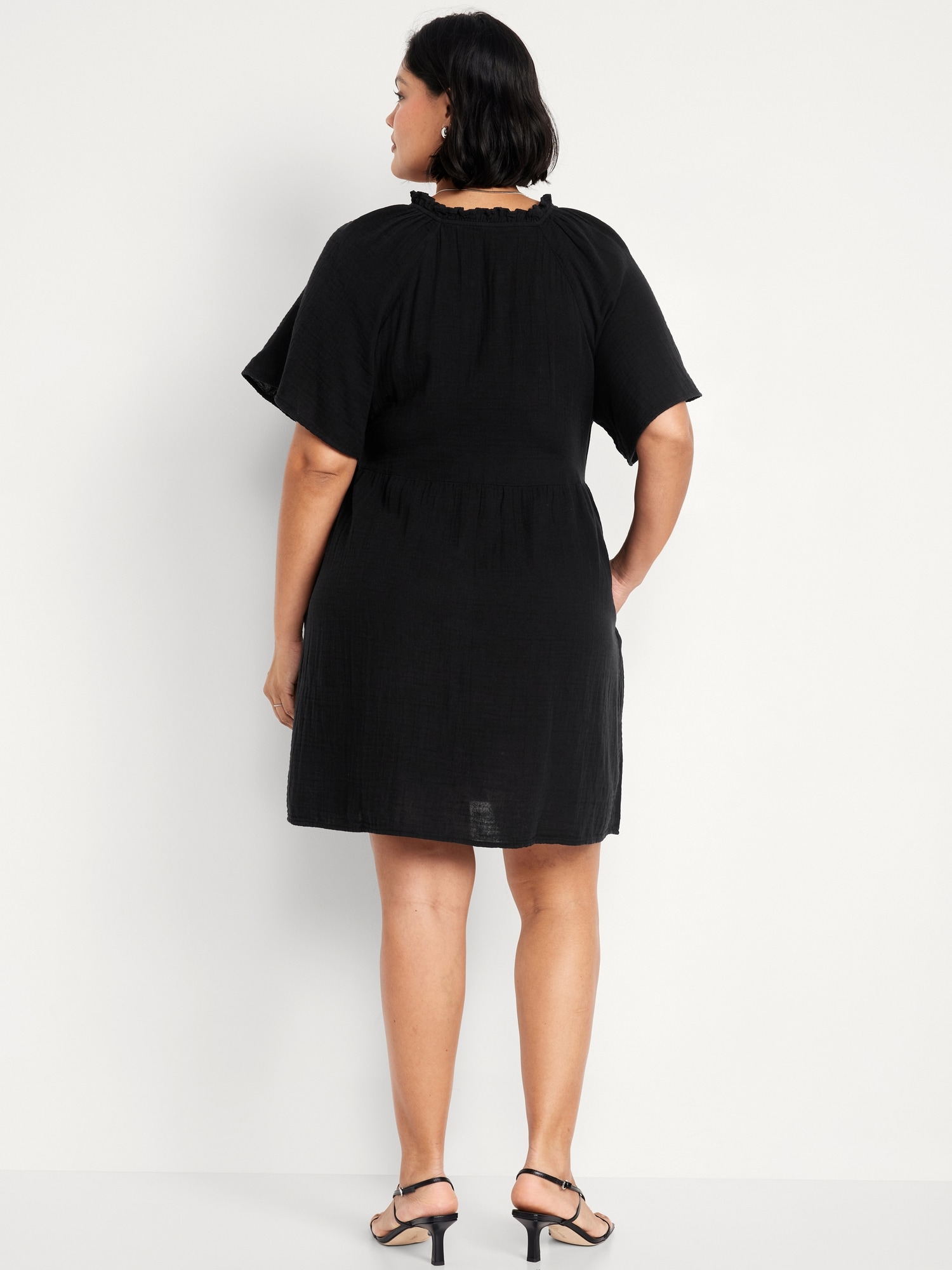 Split-Neck Crinkle Gauze Mini Swing Dress