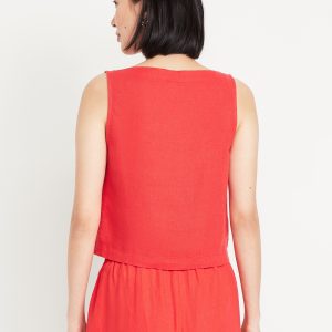 Square-Neck Linen-Blend Crop Tank Top: square neck, sleeveless, darted bust, #756733