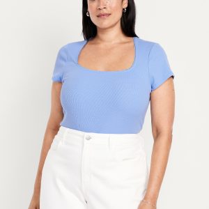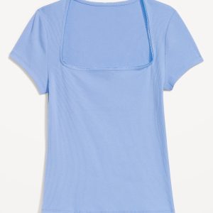 Square-Neck Ribbed T-Shirt: square neck, short sleeves, #749343