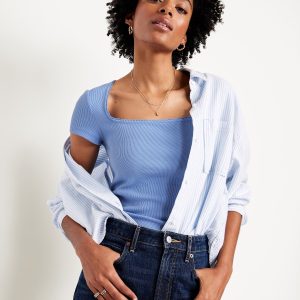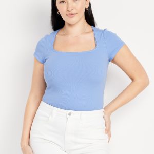 Square-Neck Ribbed T-Shirt: square neck, short sleeves, #749343