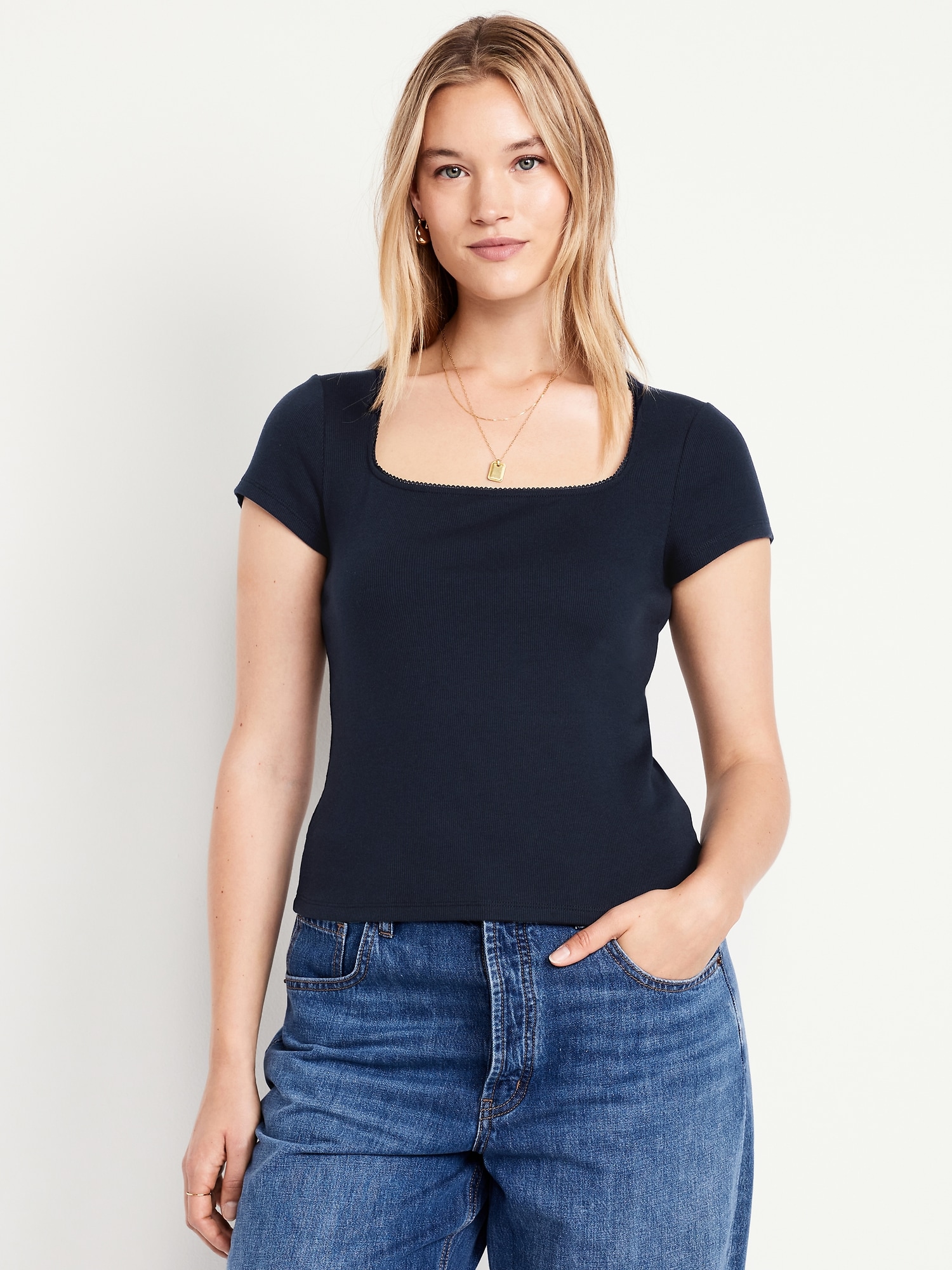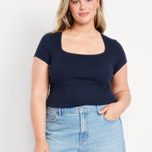 Square-Neck Ribbed T-Shirt