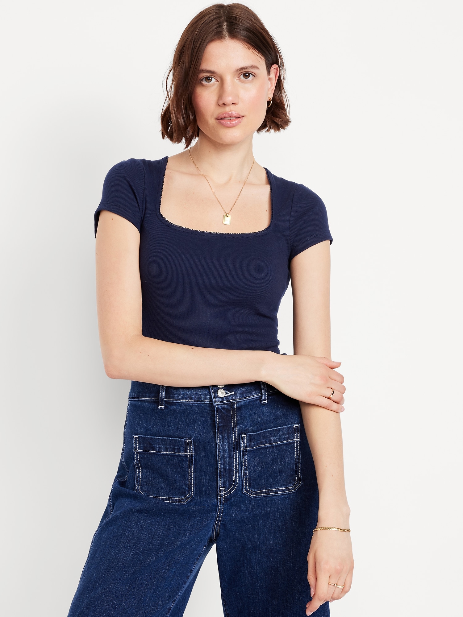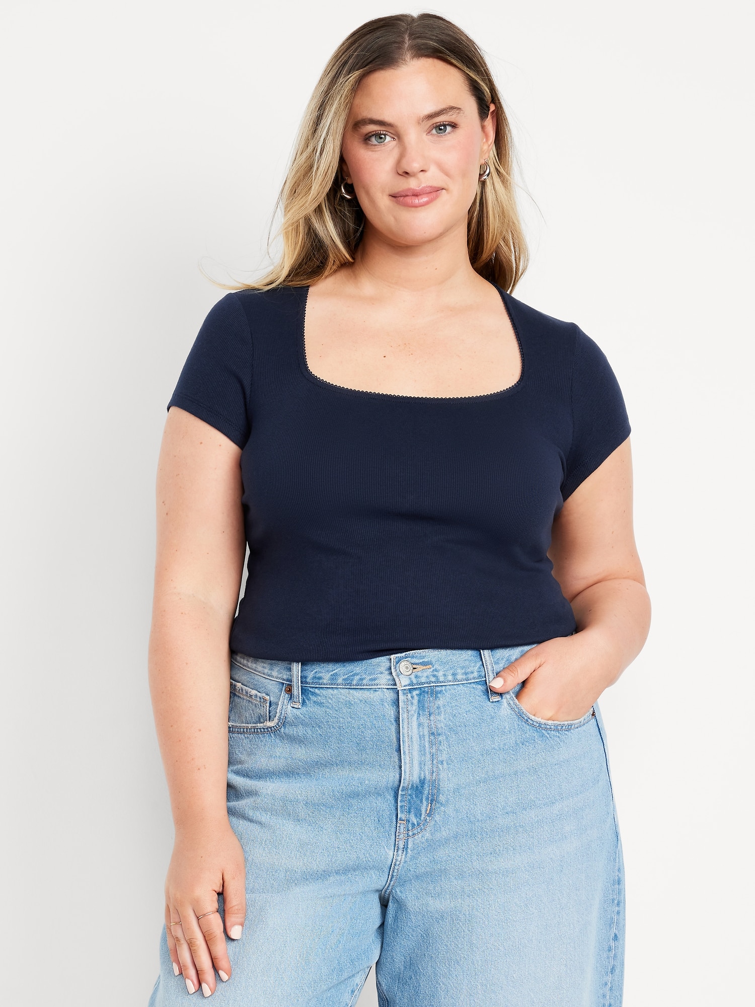 Square-Neck Ribbed T-Shirt: square neck, short sleeves, #749343