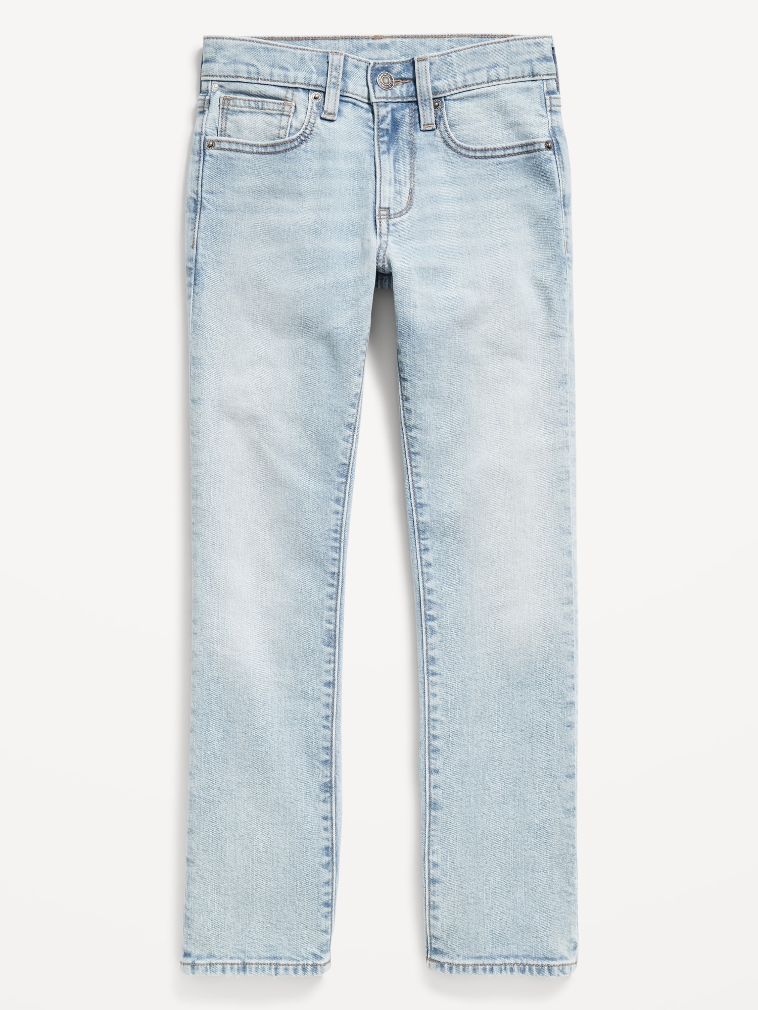 Straight-Leg Built-In Flex Jeans for Boys: Comfy, durable, wear-on-repeat faves.interior adjustable waistband, button closure, zip fly, scoop pockets and coin pocket, patch pockets at back, #814201