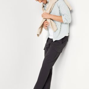 Straight Refined Tailored Cargo Pants: button front, belt loops, zip fly, diagonal front pockets, back snap-flap pockets, flap-cargo pockets at thigh, #492269