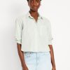 Striped Mini Shirt Dress: spread collar, short sleeves, side-seam pockets, patch chest pocket, full-button front, #705355