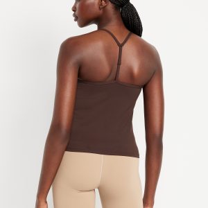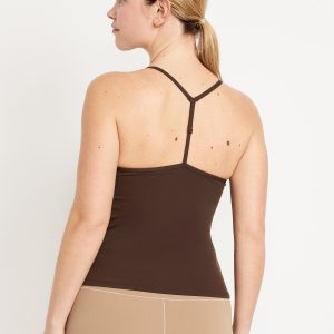 StudioSmooth Racerback Support Top: Featuring StudioSmooth. Buttery soft and breathable, with a barely-there feel.v-neck, adjustable racerback strap, shelf bra with removable pads, go-dry wicks moisture, breathable, #785415