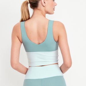 StudioSmooth Seamed Longline Top: Featuring StudioSmooth. Buttery soft and breathable, with a barely-there feel.v-neck and v-back, wide straps, shelf bra with removable pads, go-dry wicks moisture, #784415