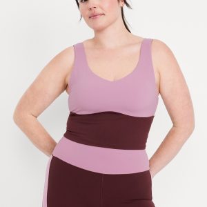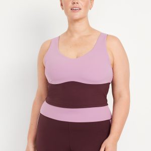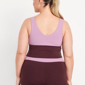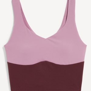 StudioSmooth Seamed Longline Top: Featuring StudioSmooth. Buttery soft and breathable, with a barely-there feel.v-neck and v-back, wide straps, shelf bra with removable pads, go-dry wicks moisture, #784415