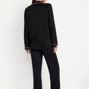 Sunday Sleep Knit Jersey Pant Set: Knit jersey so unbelievably soft and stretchy.set includes pajama shirt and matching bottoms, spread collar, long sleeves, patch chest pocket, full-button front, elastic-waist pajama pants, decorative button fly, #422082