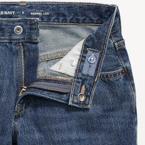 Super Baggy Barrel-Leg Jeans for Girls: mid rise, interior adjustable waistband, snap button closure (sizes 5-8), regular button closure (sizes 10-20), zip fly, scoop pockets and coin pocket, patch pockets at back, barrel leg, #803738