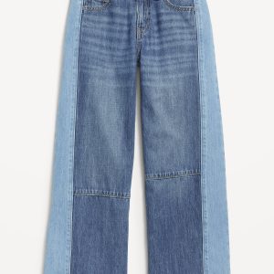 Super Baggy Two-Tone Wide-Leg Jeans for Girls
