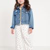 Super Baggy Two-Tone Wide-Leg Jeans for Girls: mid rise, interior adjustable waistband, crossover waist, snap button closures (sizes 5-8), regular button closures (sizes 10-20), zip fly, scoop pockets and coin pocket, patch pockets at back, wide leg, embroidered stars, #803761