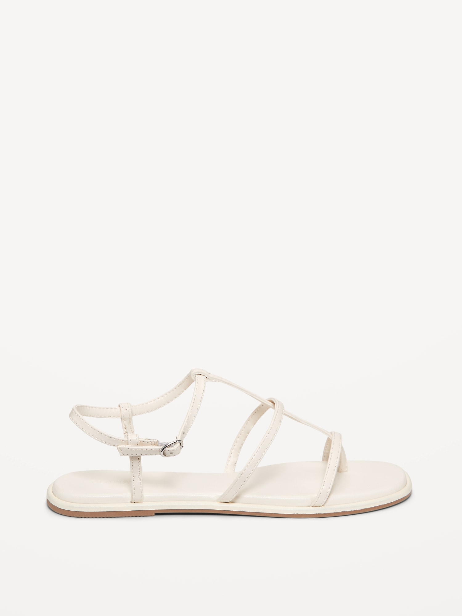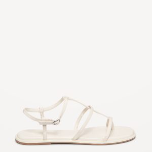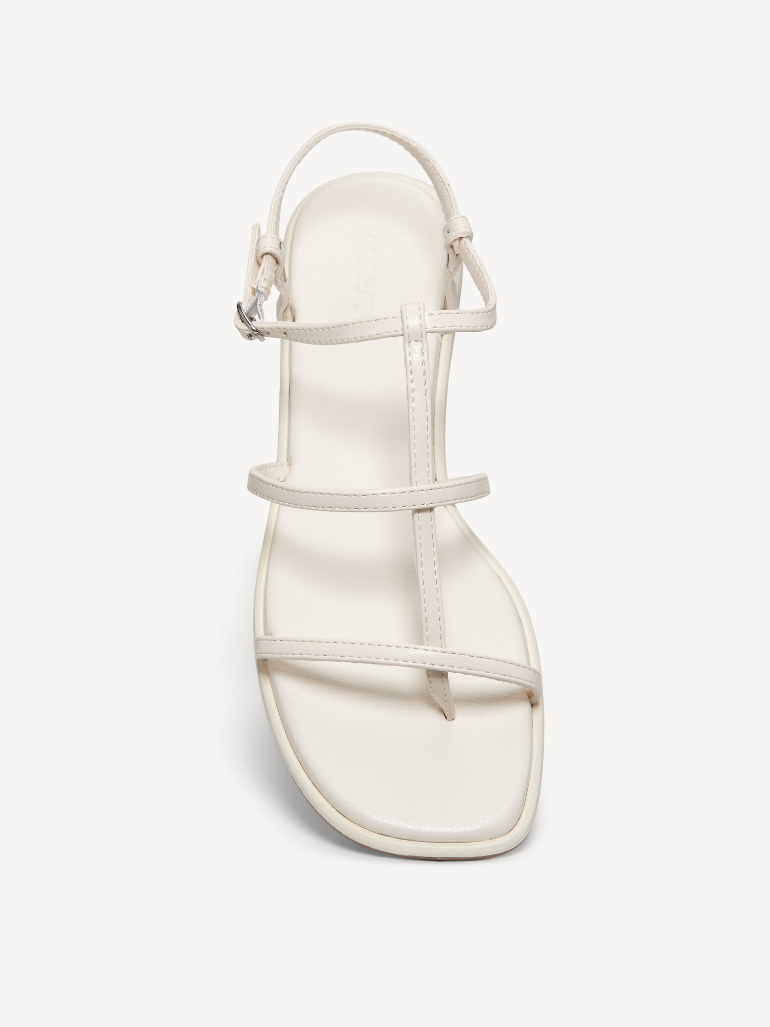 T-Bar Strappy Sandals for Women: faux leather upper, buckle closure at ankle, cushioned foot bed, #748772