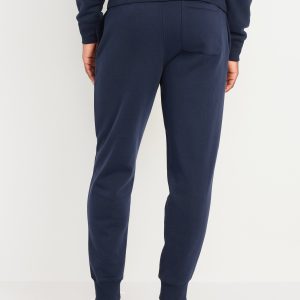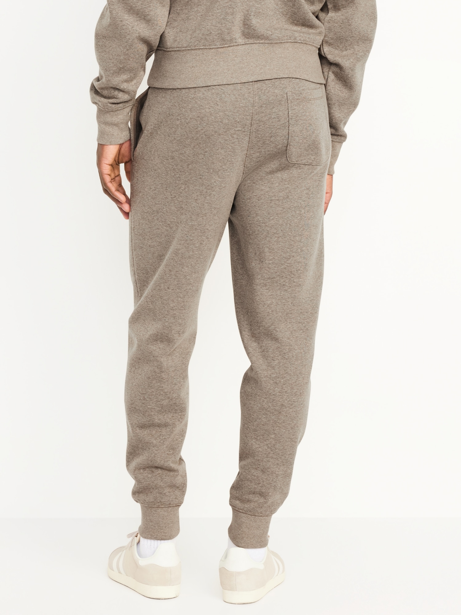 Tapered Jogger Sweatpants: elastic-drawstring waist, faux fly, on-seam pockets, single back patch pocket, rib-knit cuffs, pull-on style, #470325