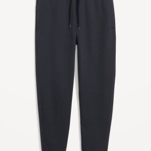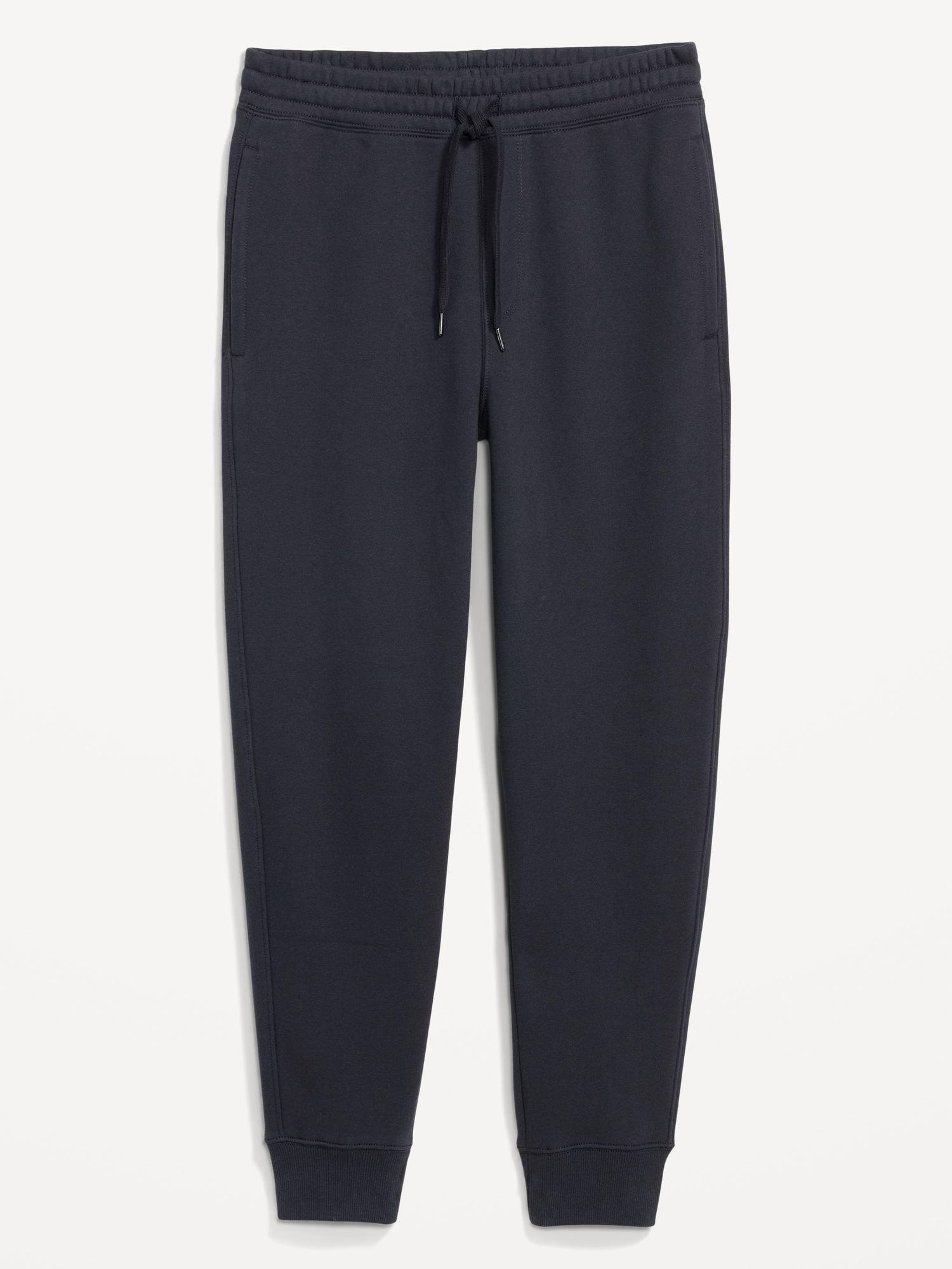 Tapered Jogger Sweatpants: elastic-drawstring waist, faux fly, on-seam pockets, single back patch pocket, rib-knit cuffs, pull-on style, #470325