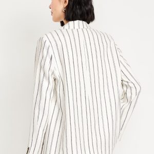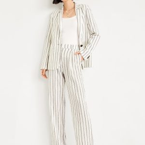 Taylor Fitted Linen-Blend Suit Blazer: notched lapel, long sleeves, buttoned cuffs, single-button front, front pockets, #663788