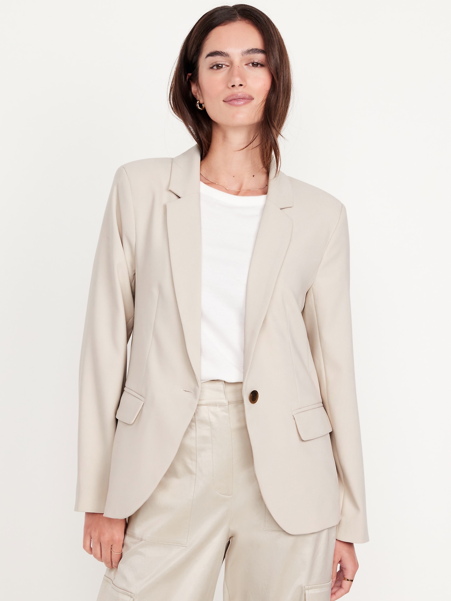 Taylor Fitted Suit Blazer: notched lapel, long sleeves, buttoned cuffs, single-button front, flap pockets, #479495