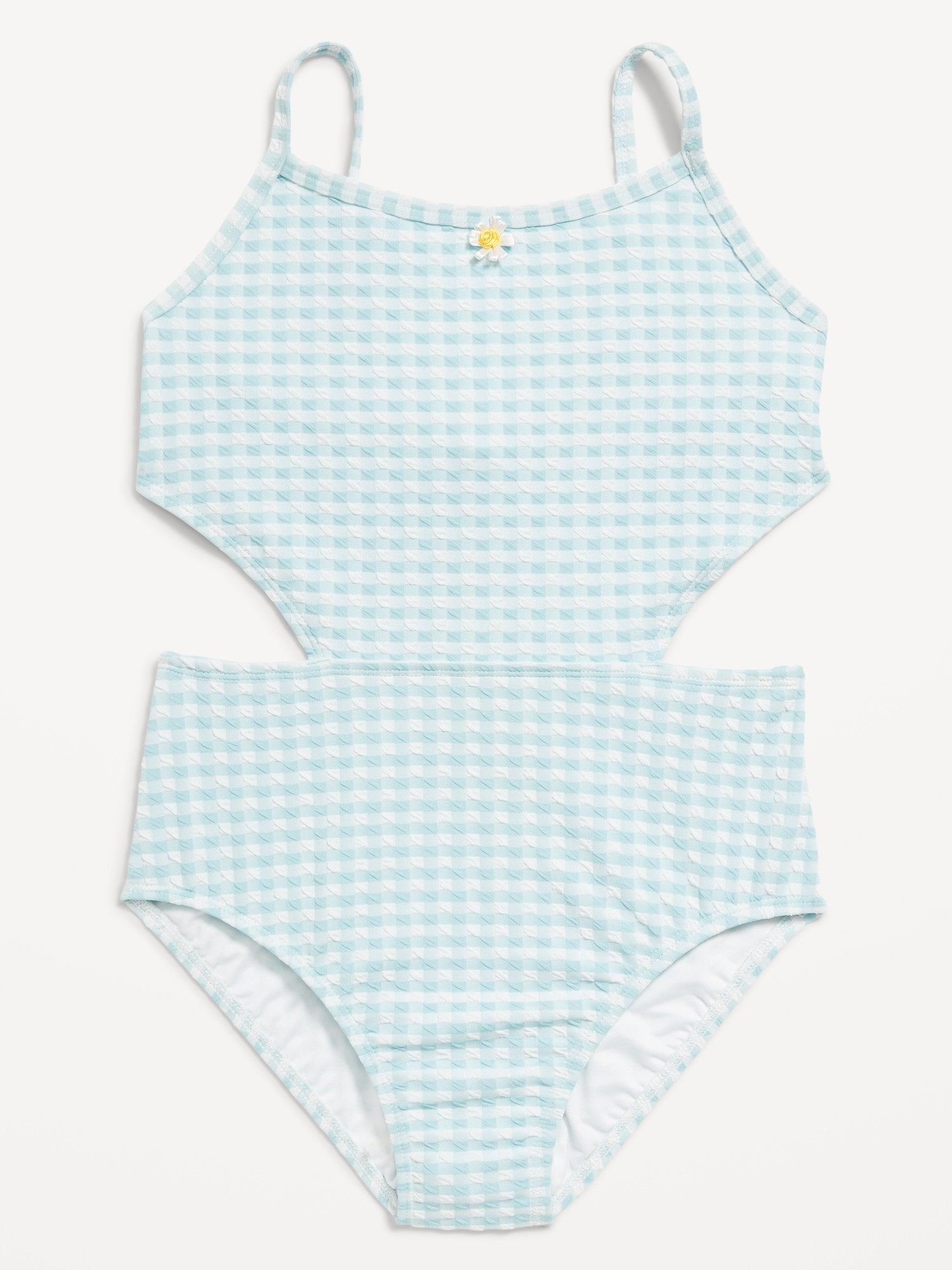 Textured Jacquard Side-Cutout One-Piece Swimsuit for Girls