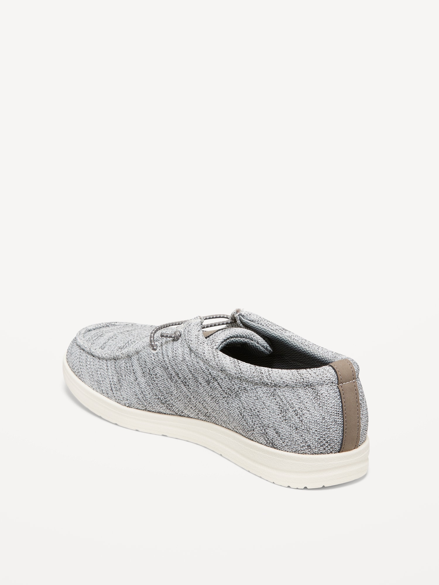 Textured Knit Loafers: decorative lace front, soft-knit upper, contrasting synthetic midsole, textured outsole, easy slip-on style, #684902