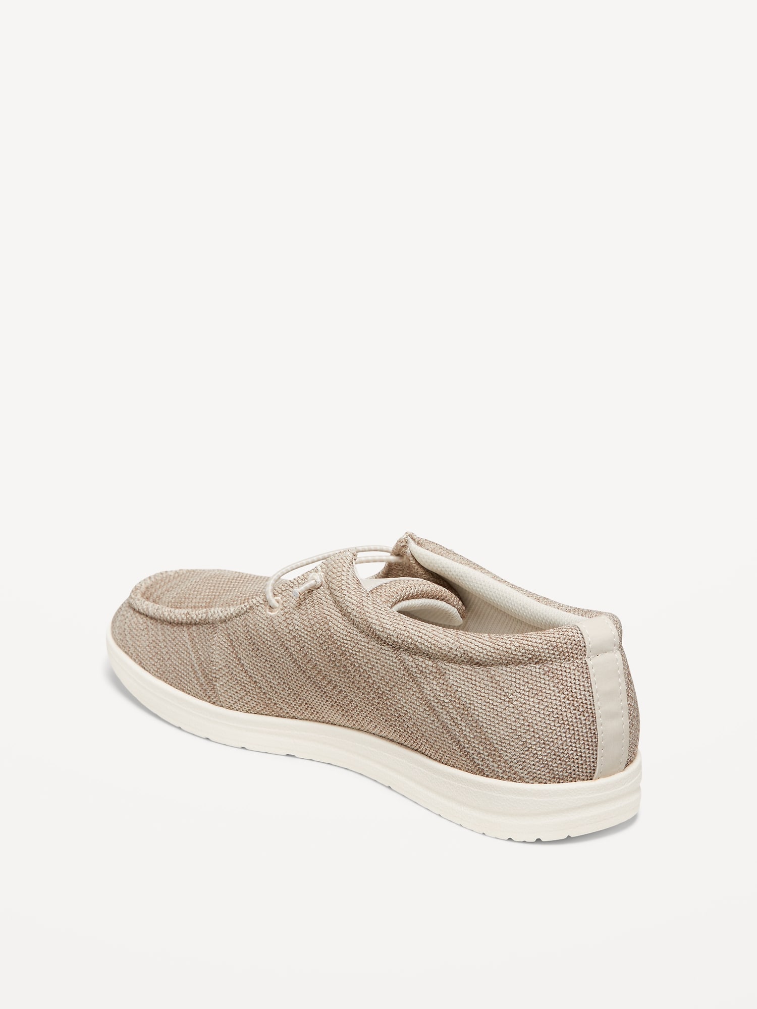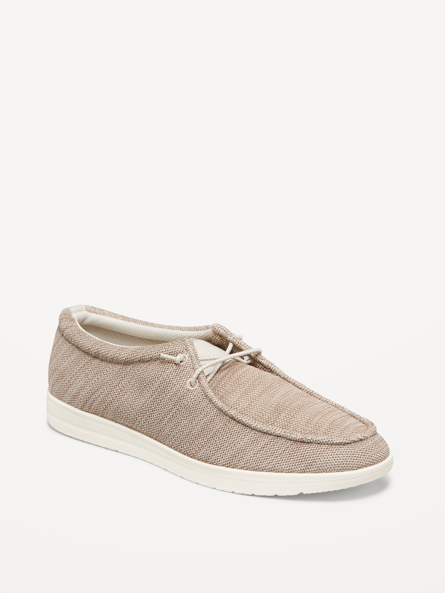 Textured Knit Loafers: decorative lace front, soft-knit upper, contrasting synthetic midsole, textured outsole, easy slip-on style, #684902