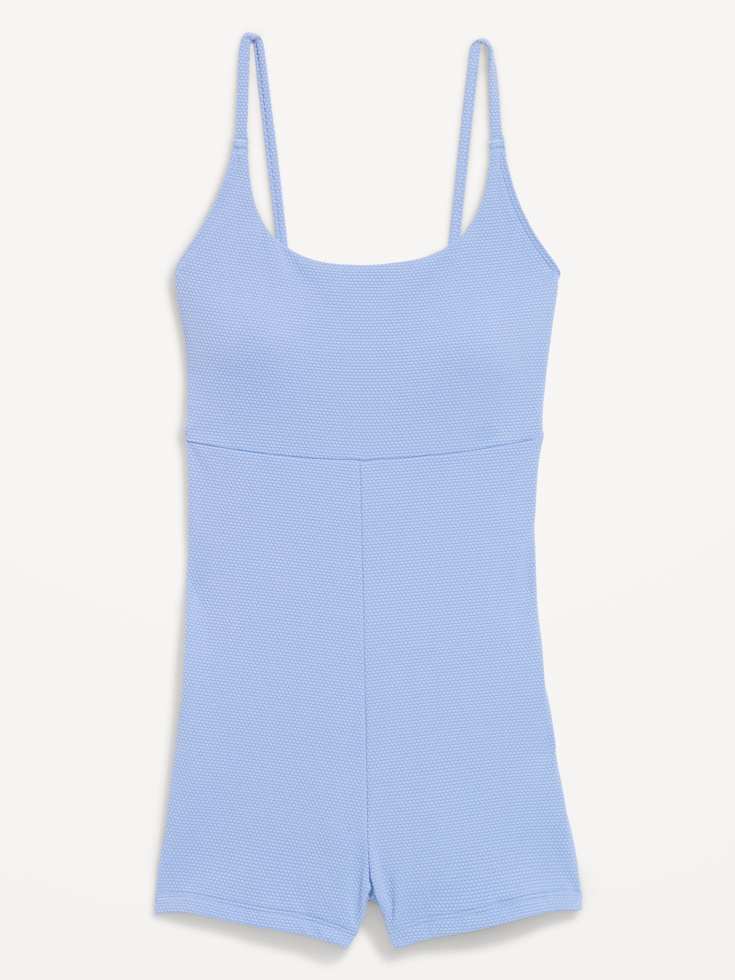 Textured Swim Romper — 2.5-inch inseam: scoop neck, spaghetti straps, seamed waist, #892291