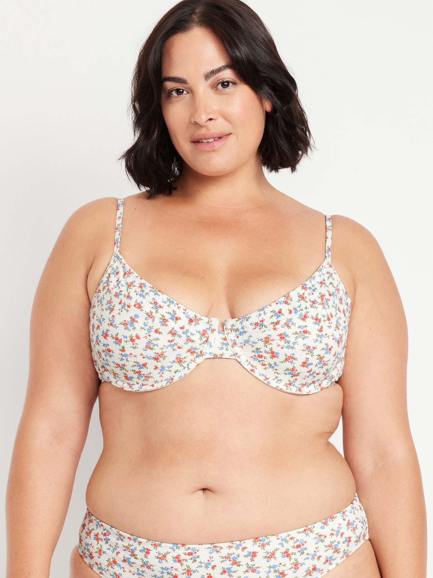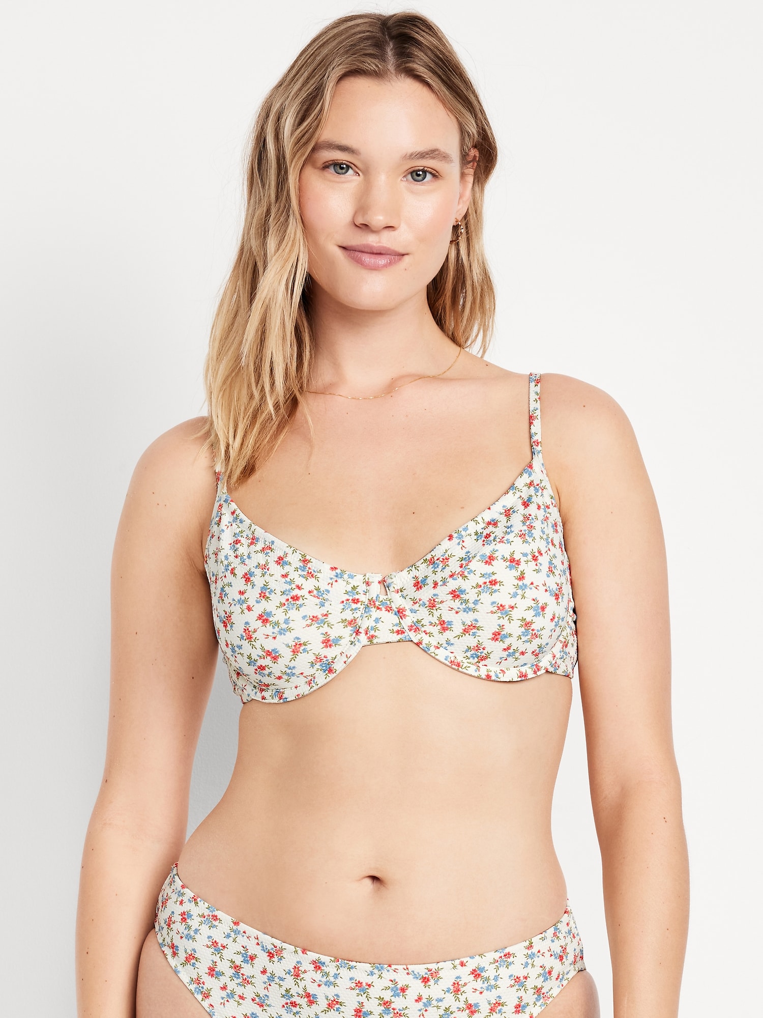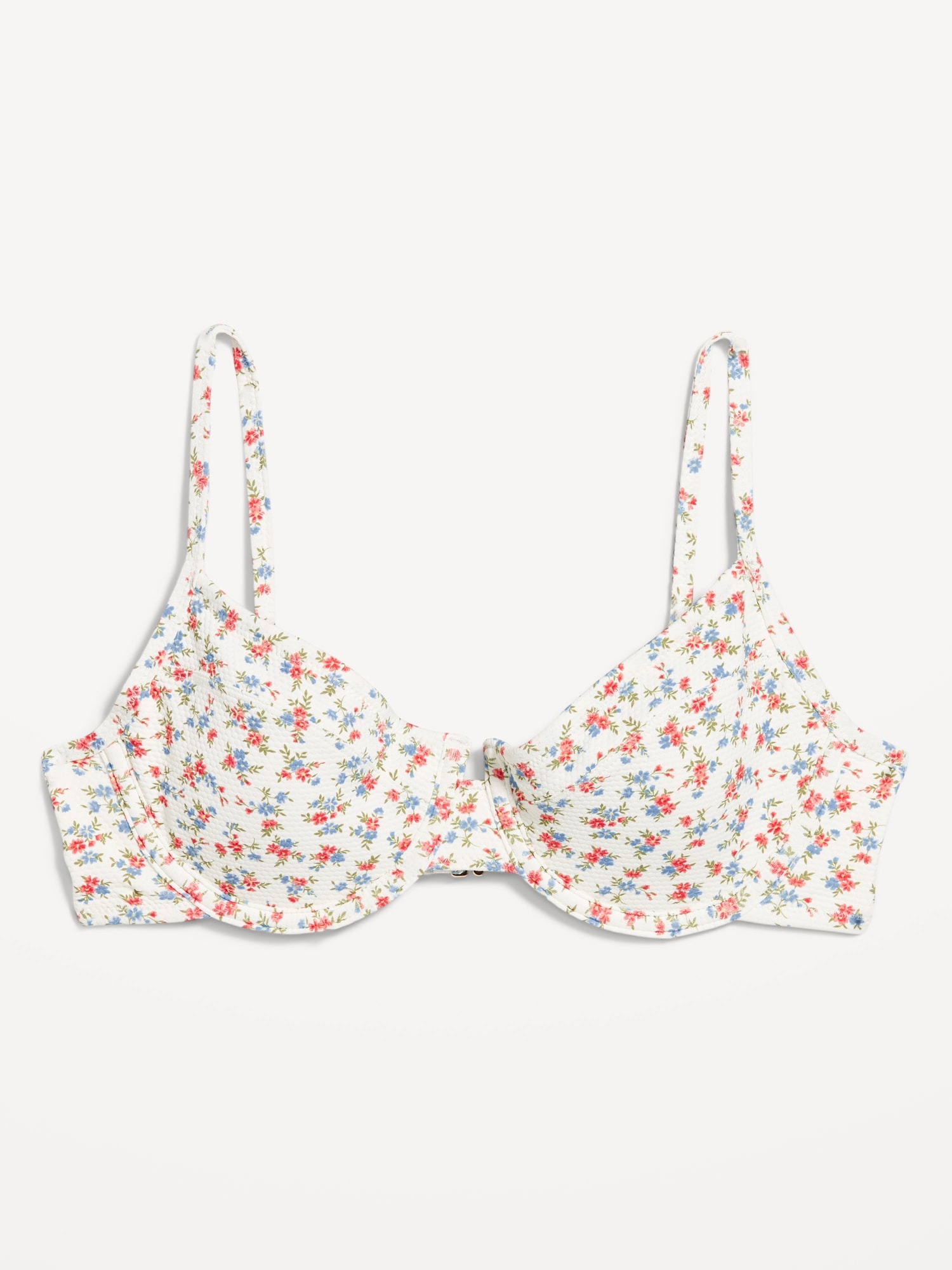 Textured Underwire Balconette Swim Top: adjustable straps, removable cups, underwire and side-boning support, adjustable hook-and-eye at back, full lining, #680791