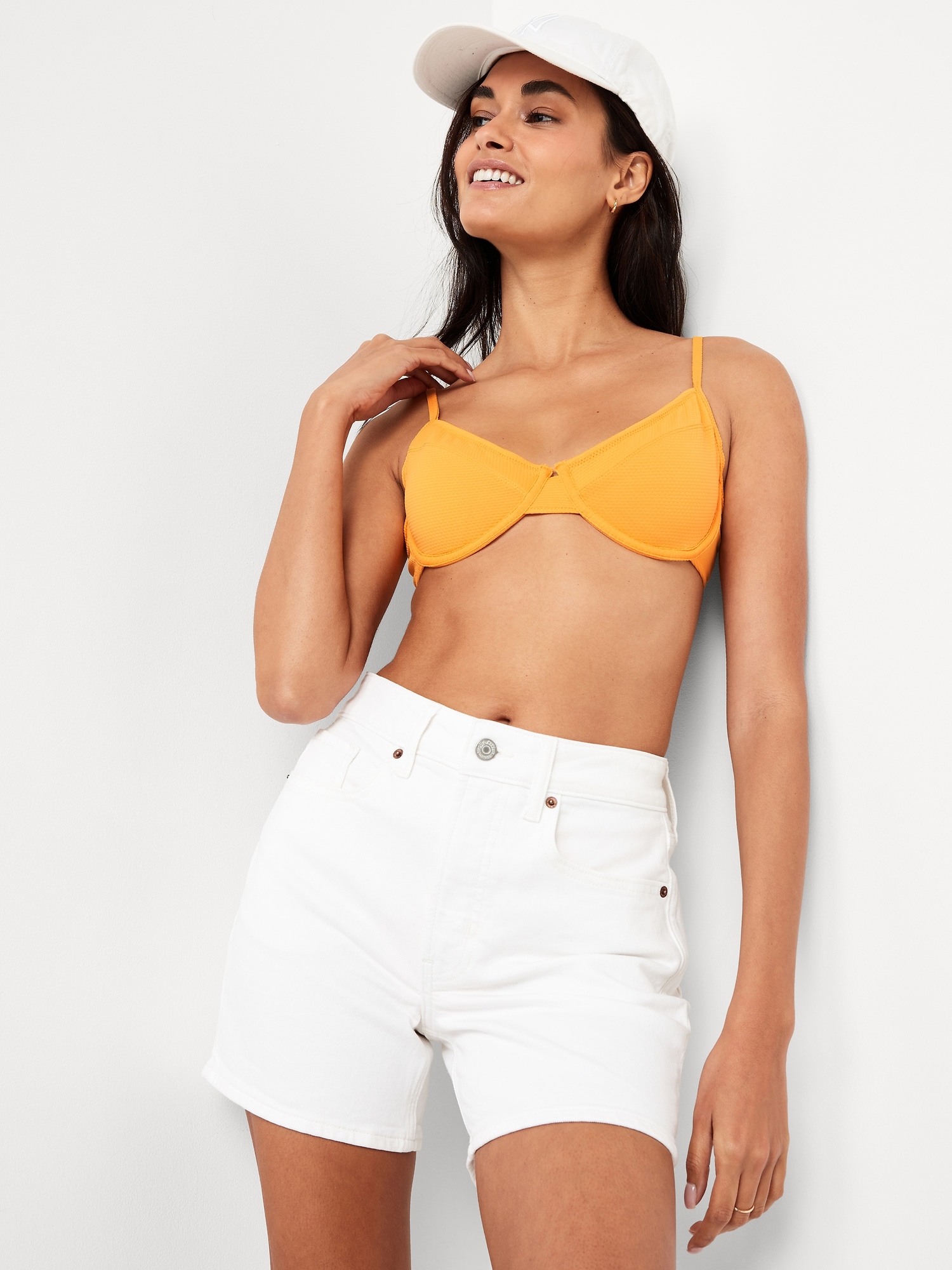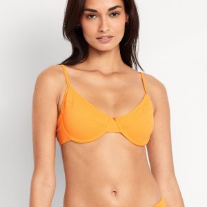 Textured Underwire Balconette Swim Top: adjustable straps, removable cups, underwire and side-boning support, adjustable hook-and-eye at back, full lining, #680791