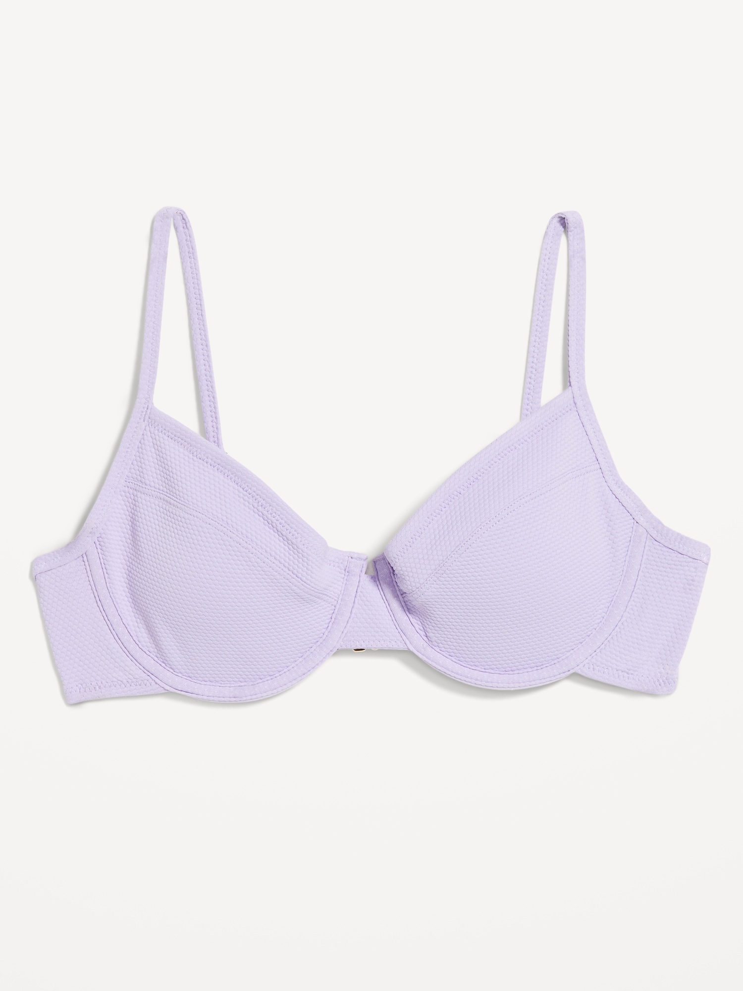 Textured Underwire Balconette Swim Top: adjustable straps, removable cups, underwire and side-boning support, adjustable hook-and-eye at back, full lining, #680791